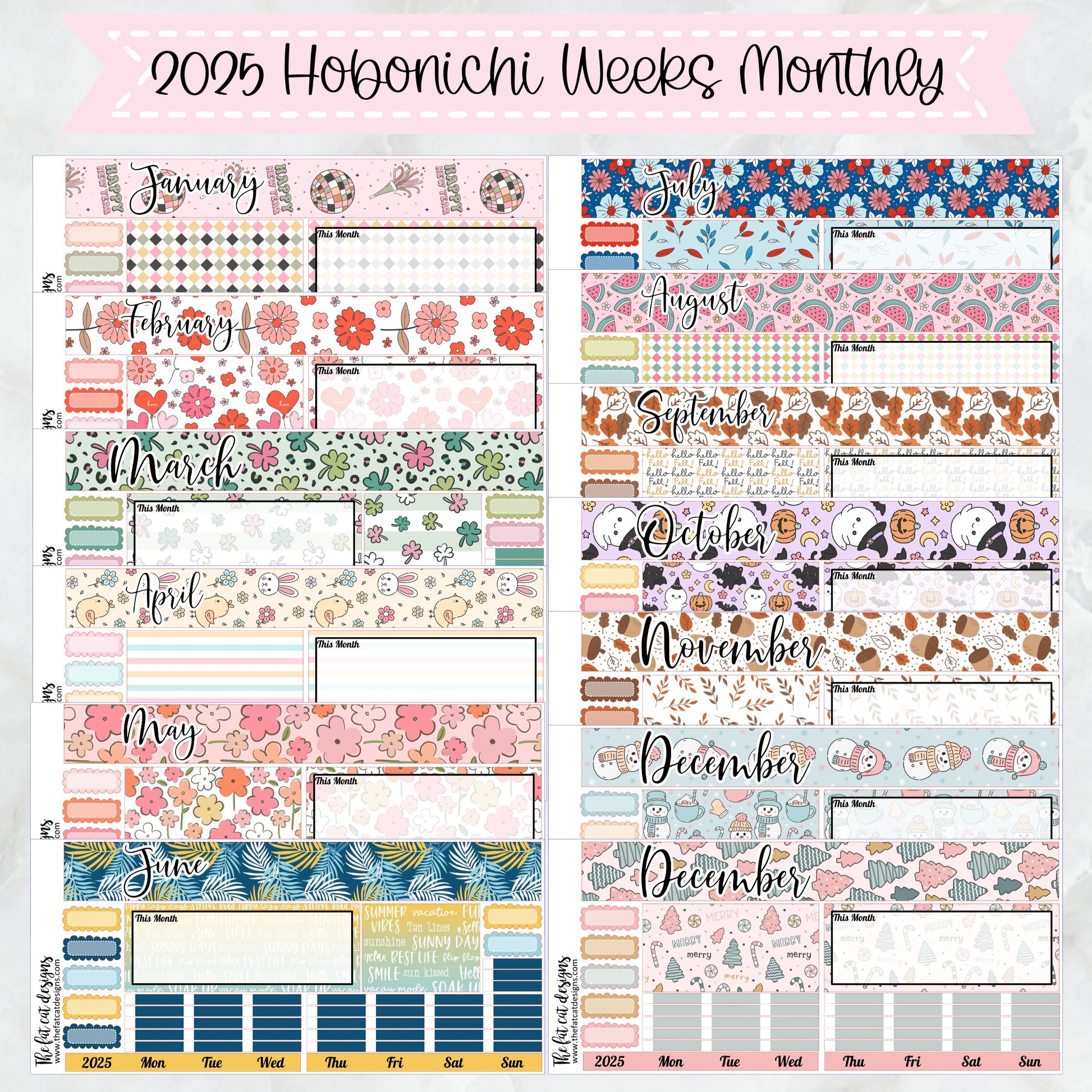 2025 Monthly Planner Stickers for the Hobonichi Weeks