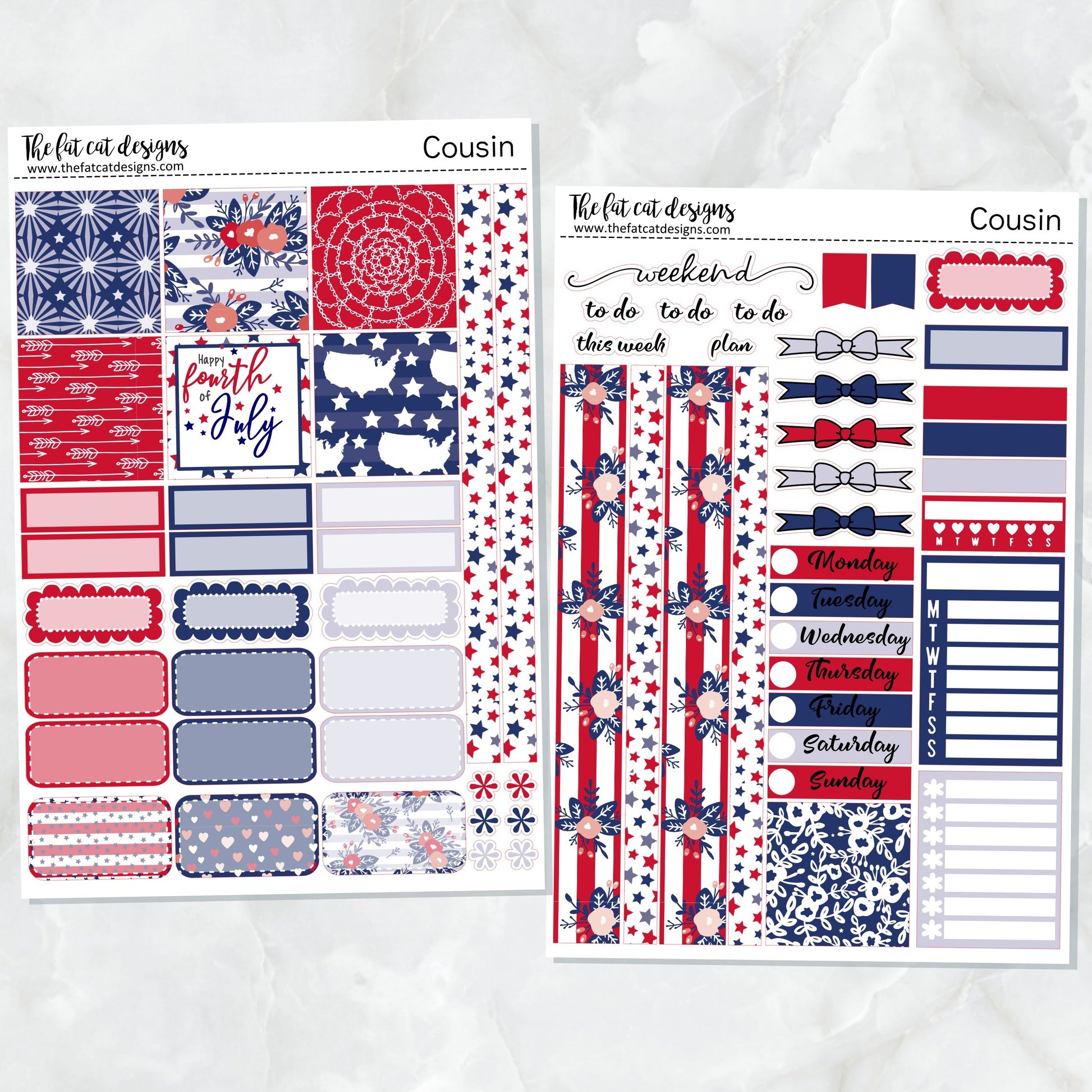 4th of July Independence Day Patriotic Planner Stickers Hobonichi Cousin