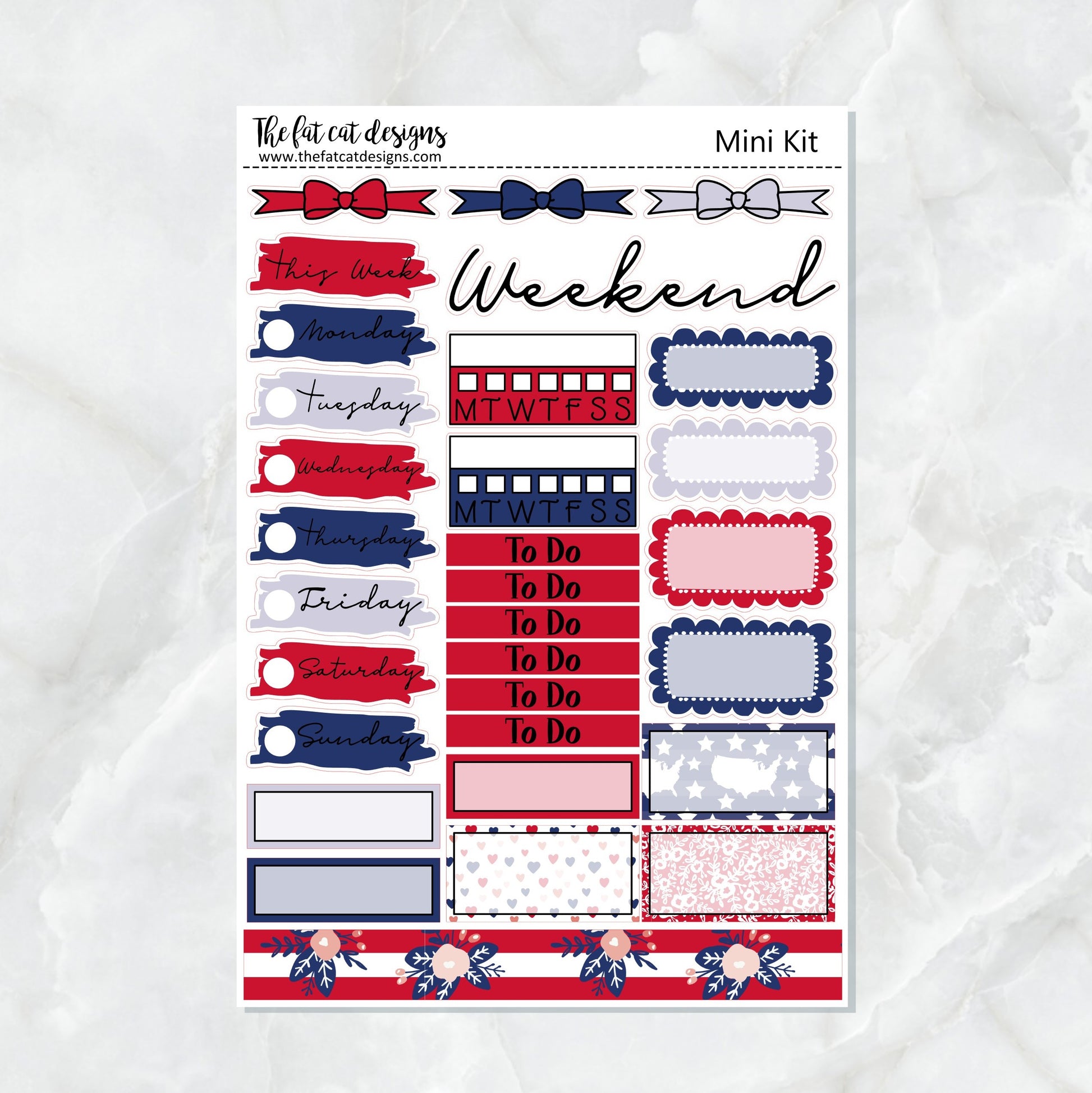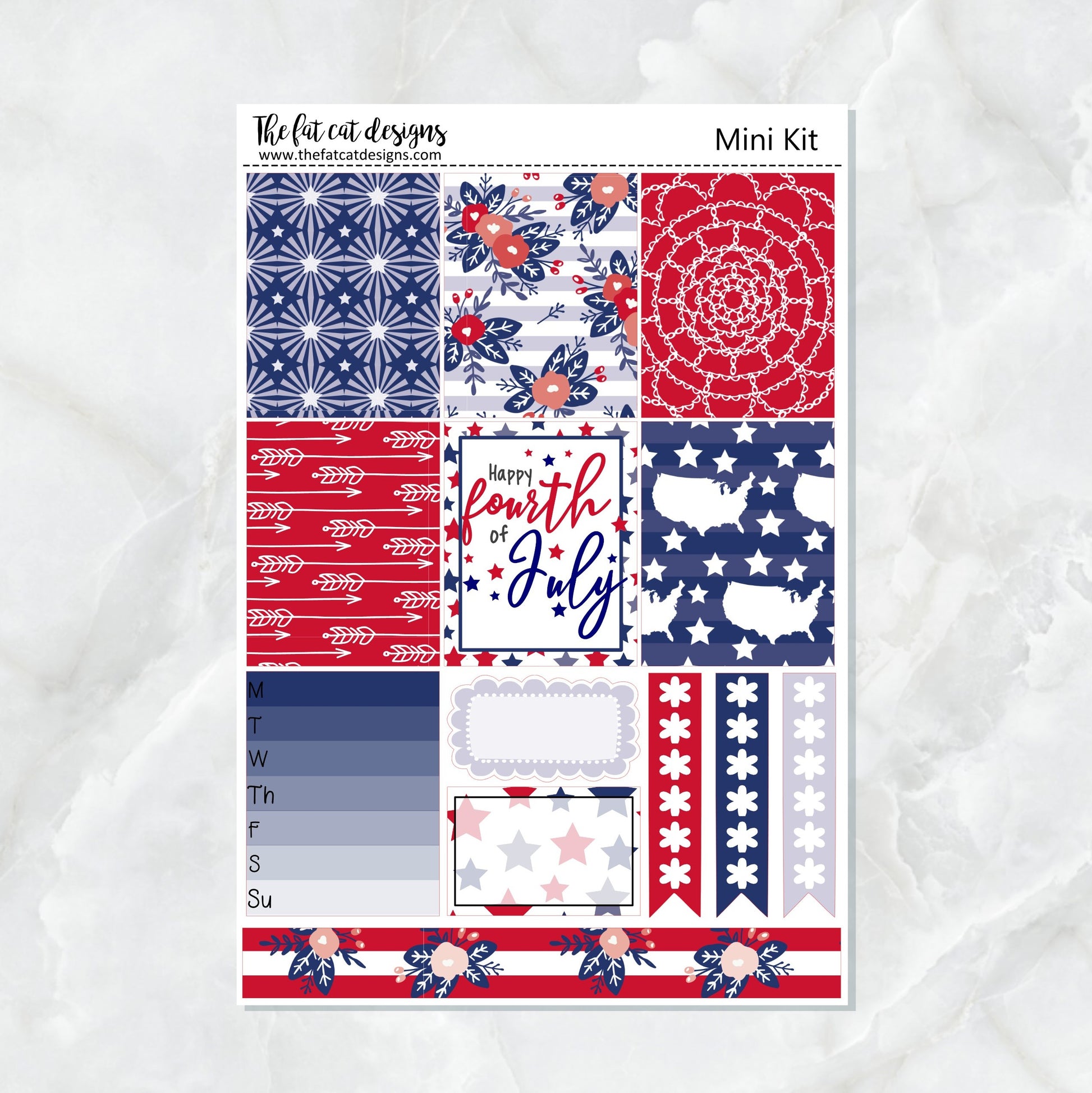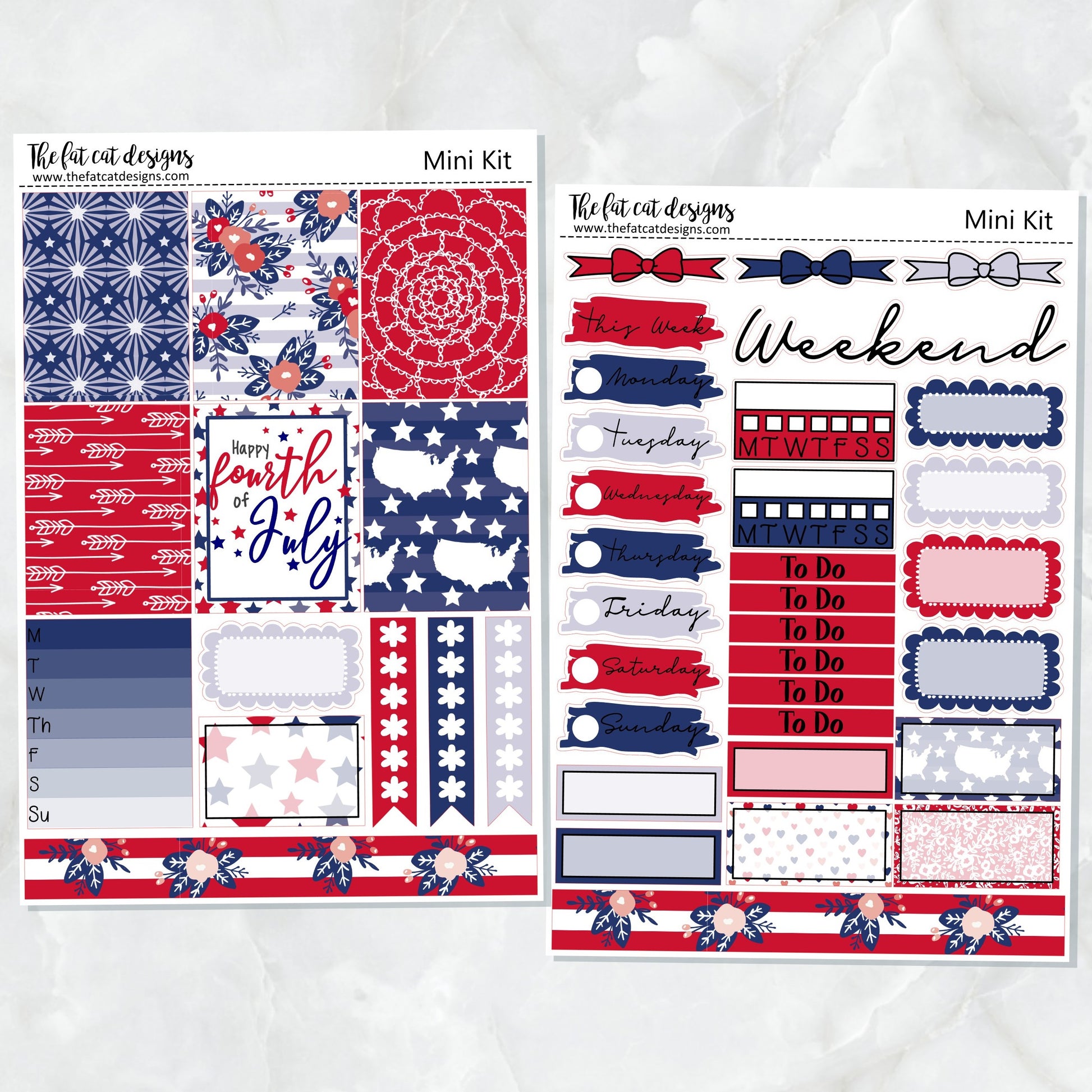 4th of July Independence Day Patriotic Planner Stickers Mini Kit Printpression B6