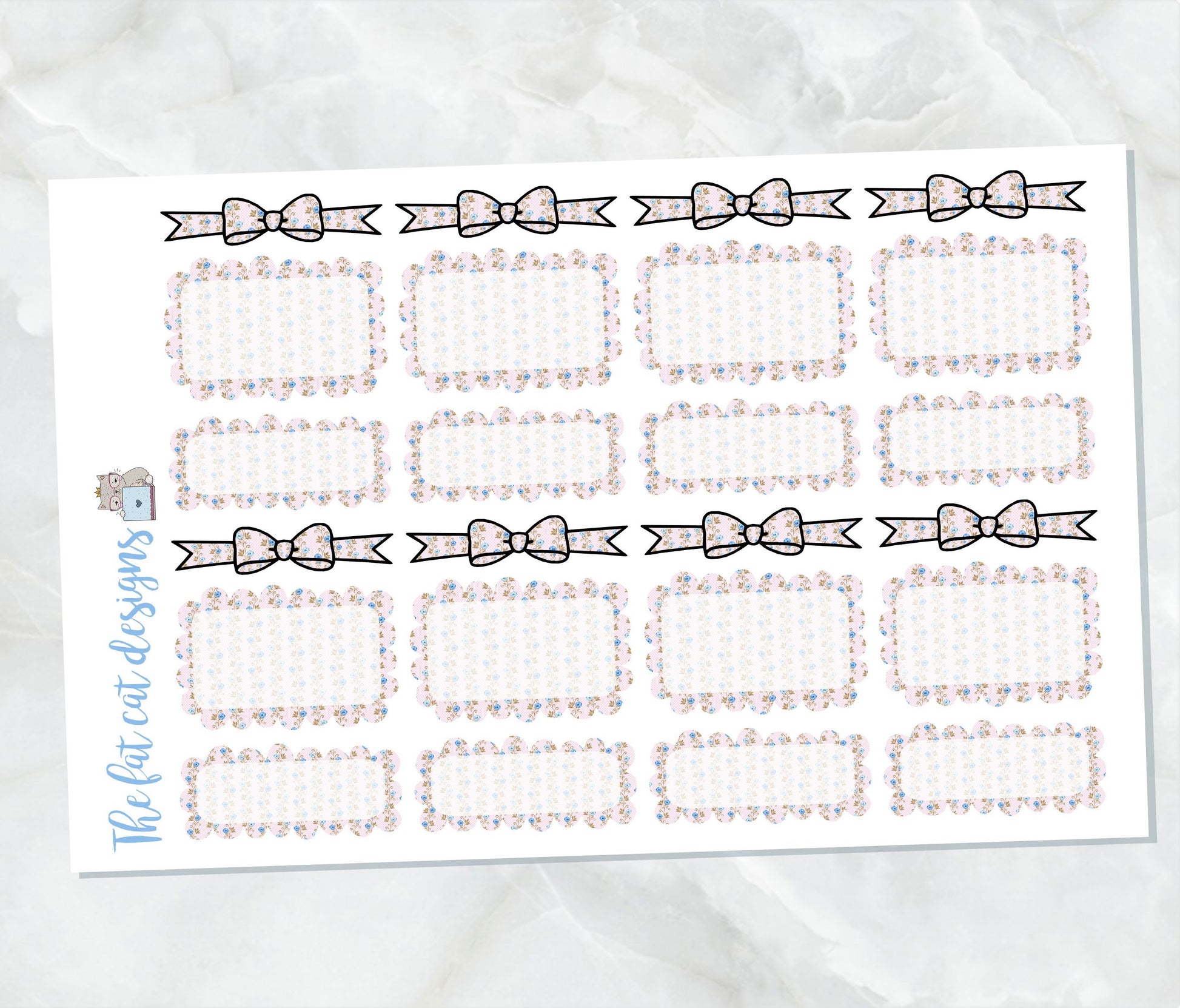 Blue Vintage Flowers Bow Headers and Scalloped Box Stickers for Happy Planner Travelers Notebooks Plum Paper