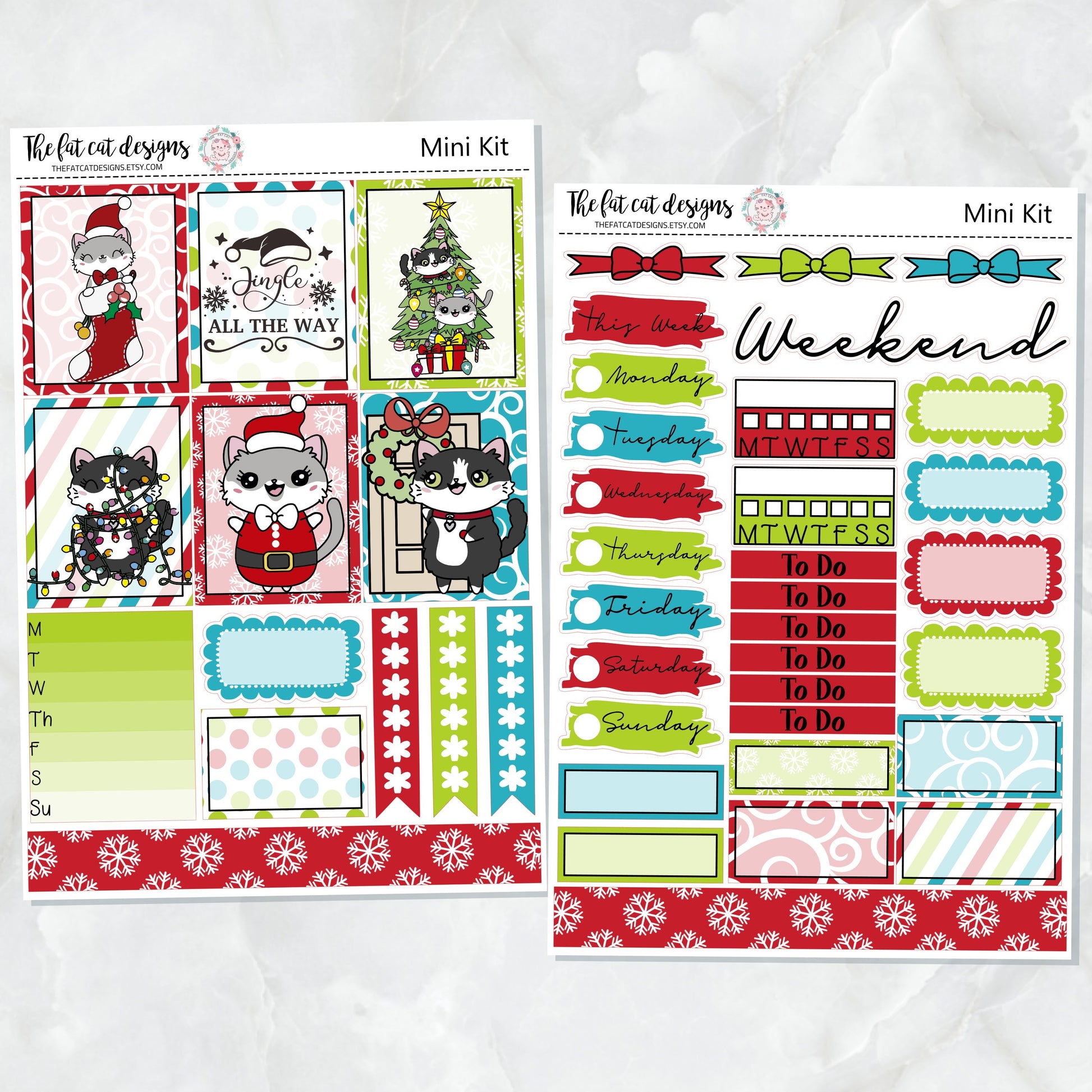 Christmas Cats Lily and Bud Mini Planner Sticker Kit for the Printpression B6 Travelers Notebooks