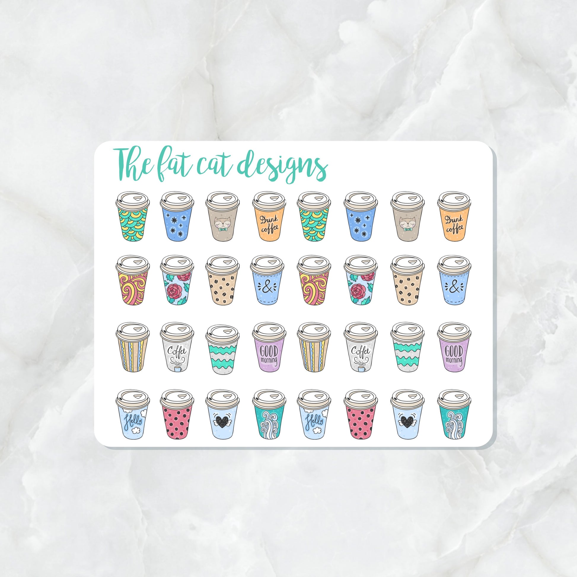 -Colorful and fun Coffee To Go Cups, you will receive 32 stickers on one sheet.