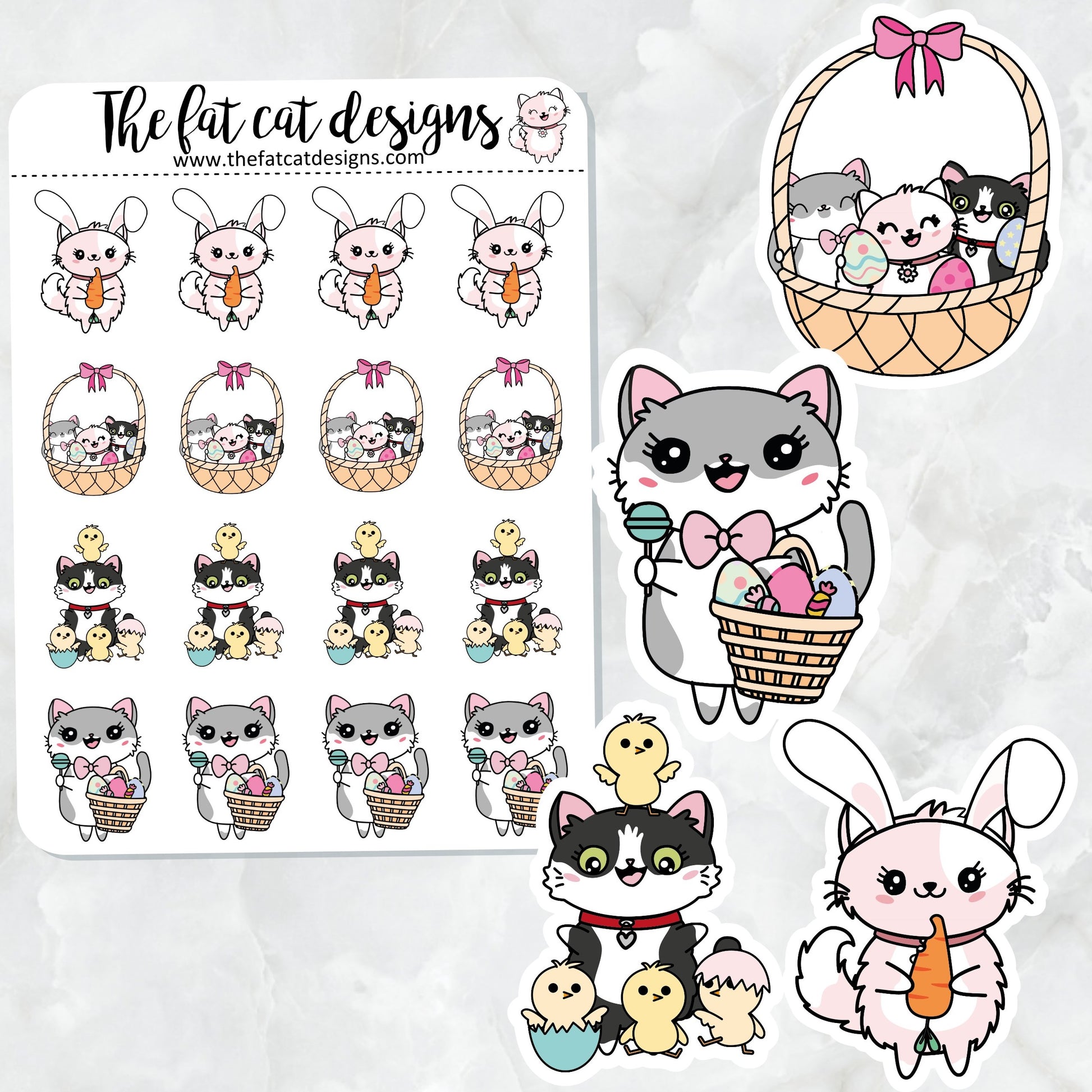 Easter Kitties! Set includes 4 Die Cuts and 1 sheet of matching stickers.