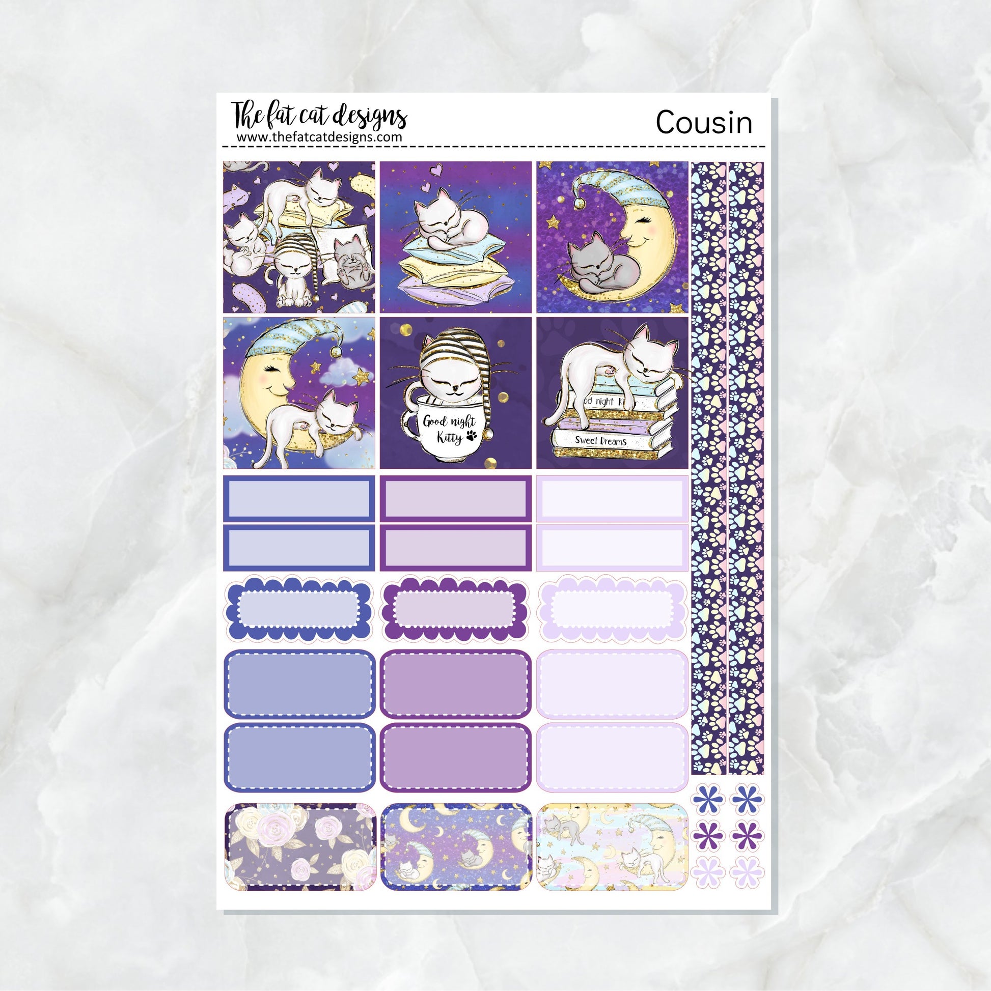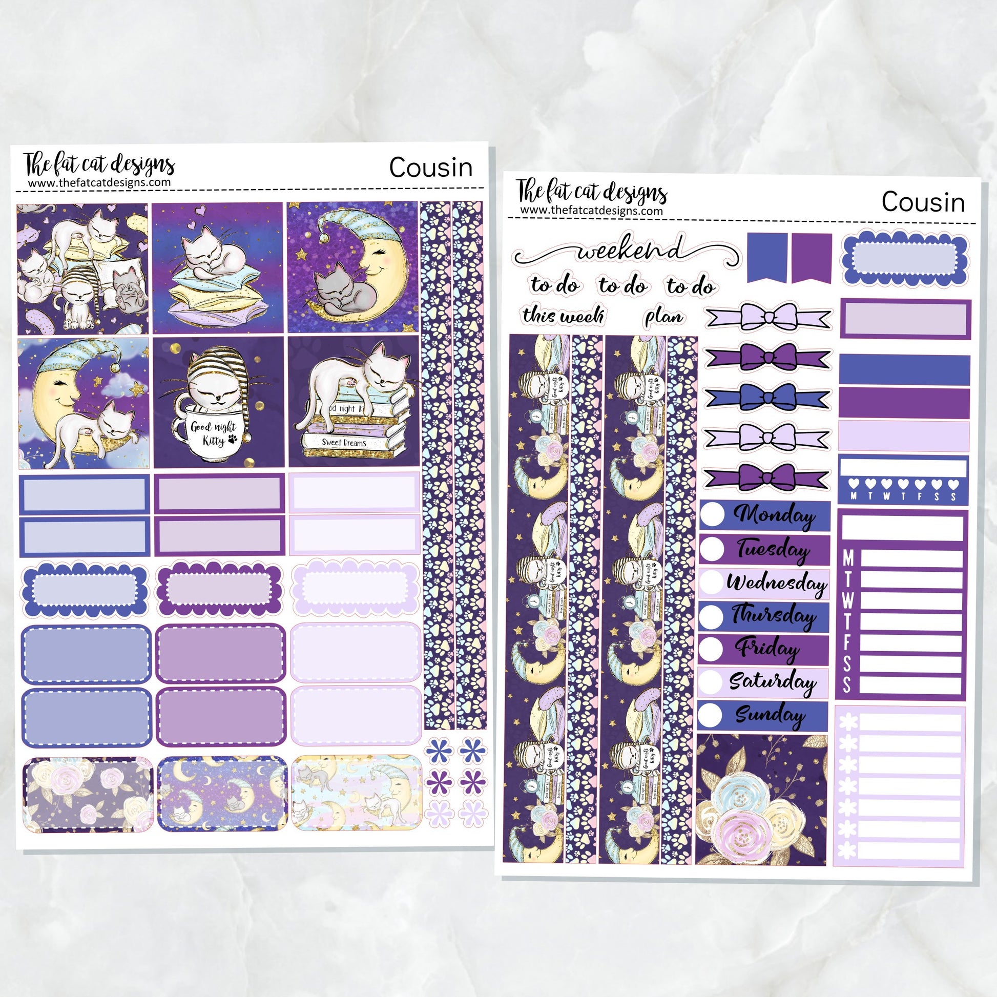 Goodnight Kitty Cat Planner Stickers for the Hobonichi Cousin