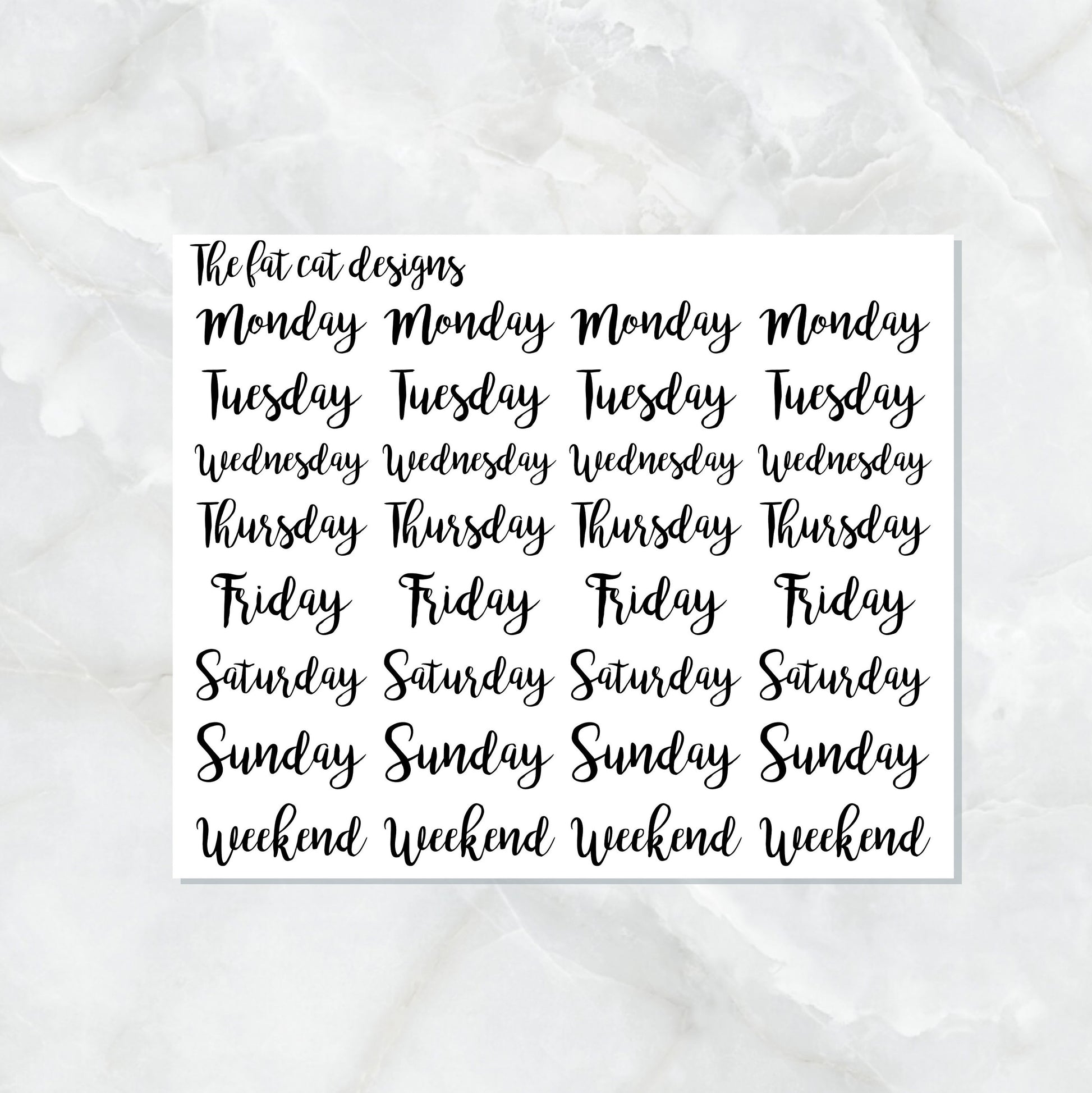 Days of the Week Script Planner Stickers for Happy Planner Hobonichi Printpression Travelers Notebook