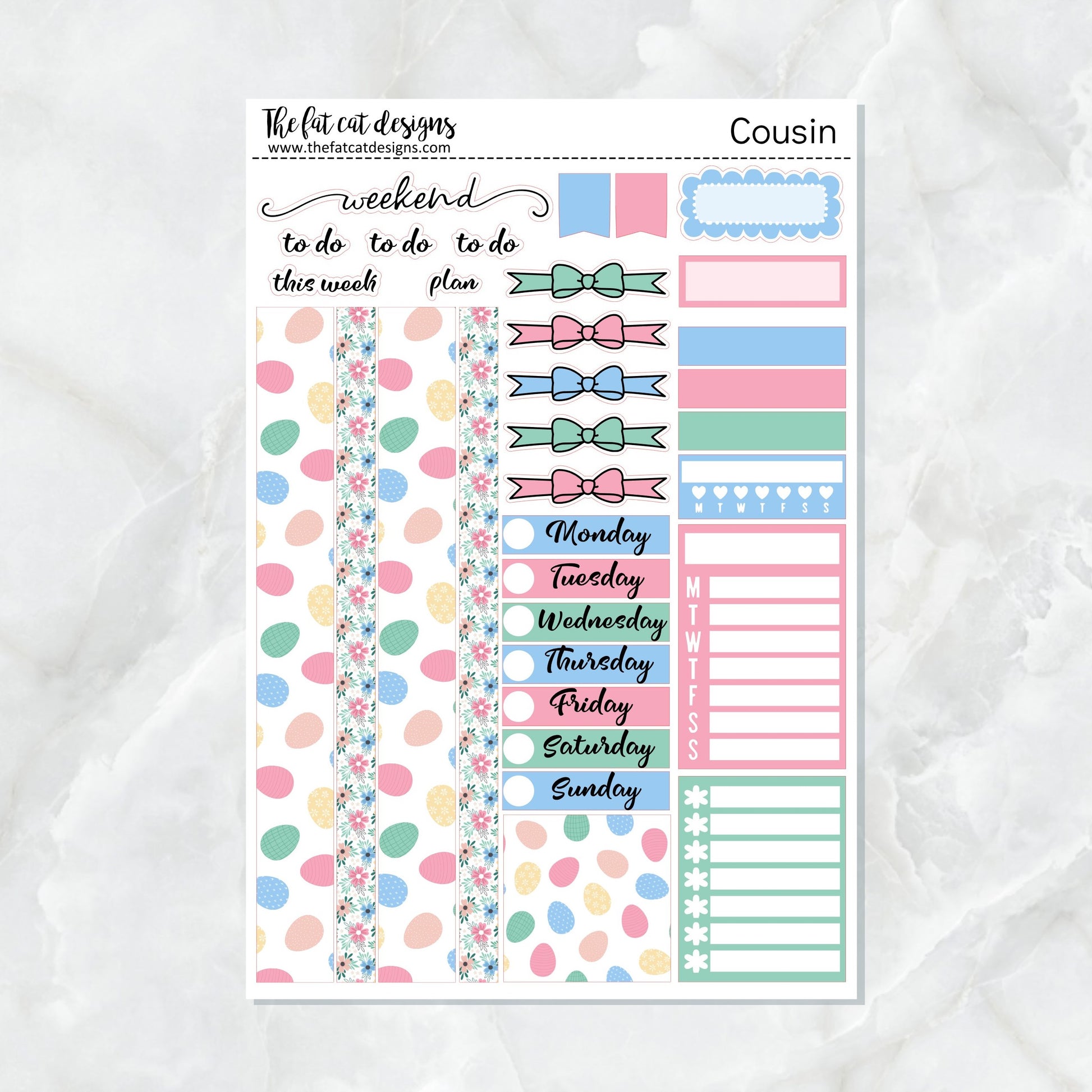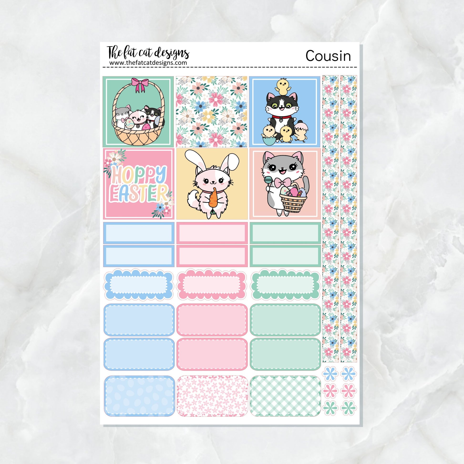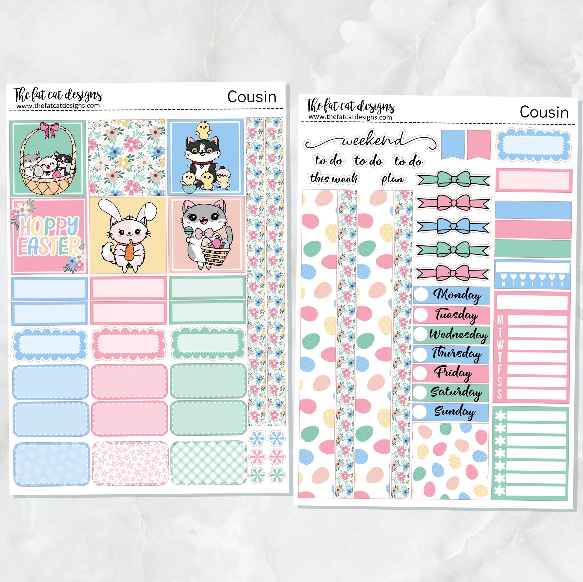 Easter Fun with Flora Lily and Bud Cats Weekly Planner Sticker Kit for the Hobonichi Cousin