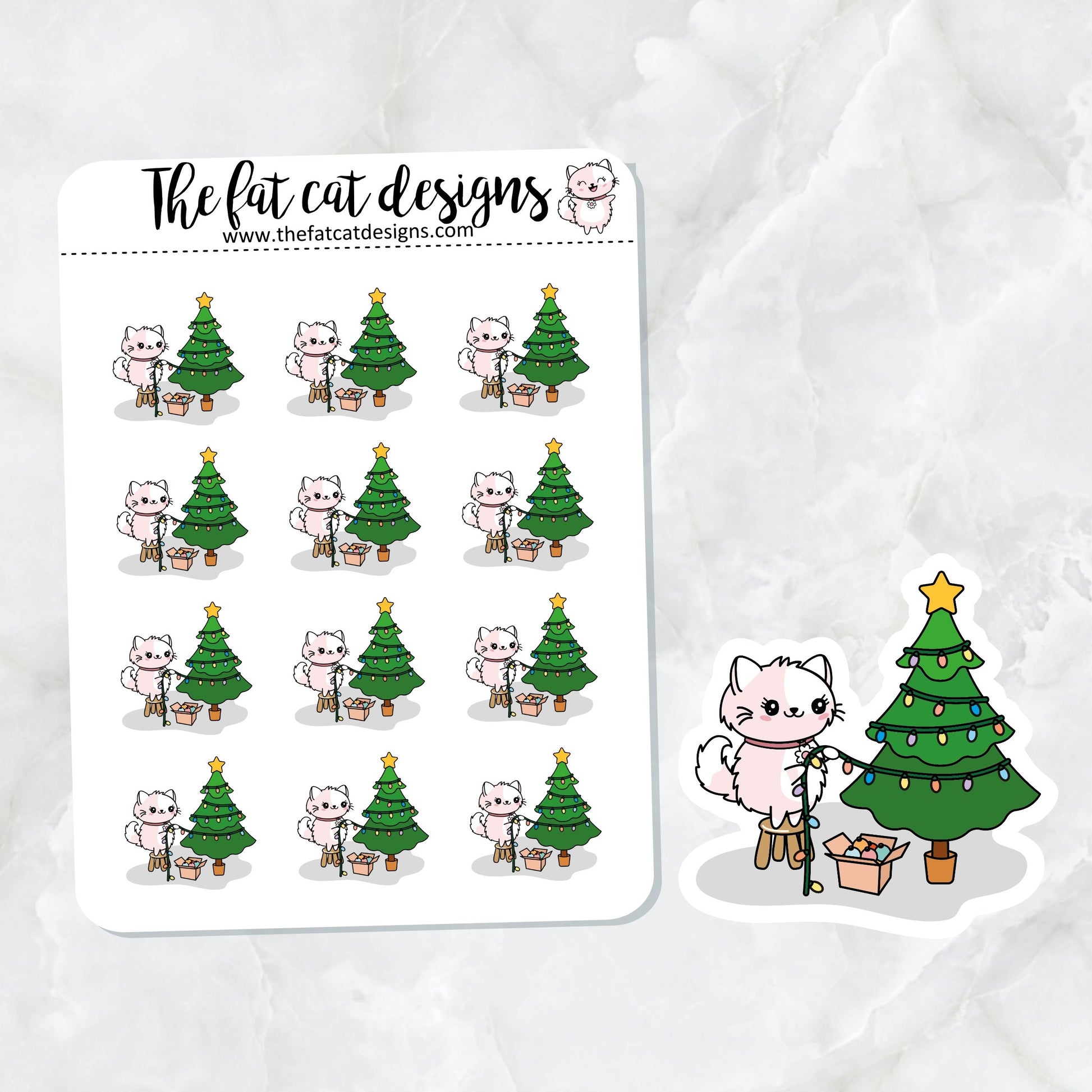 Flora decorates the Christmas tree Exclusive Cat Die Cut Sticker Sheet