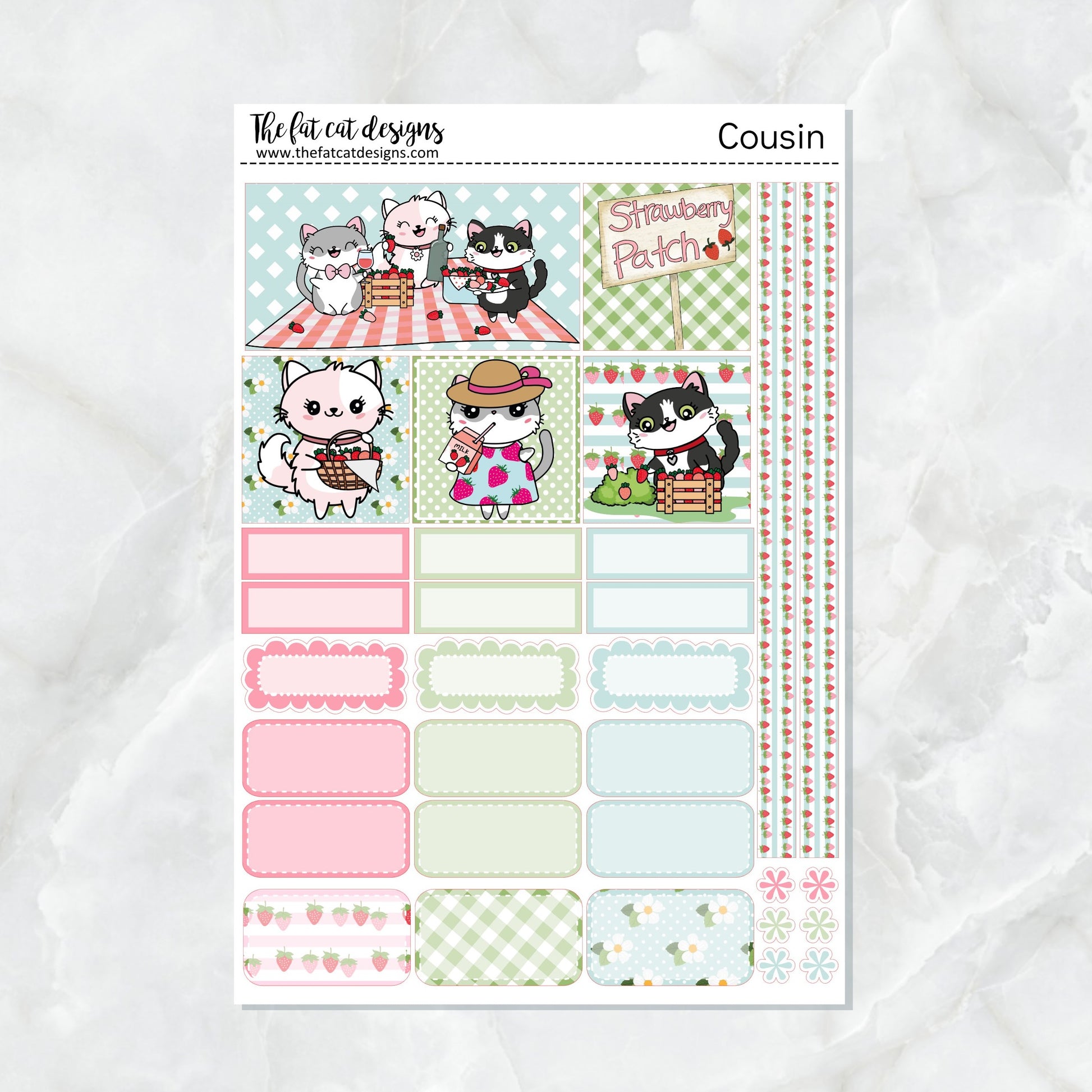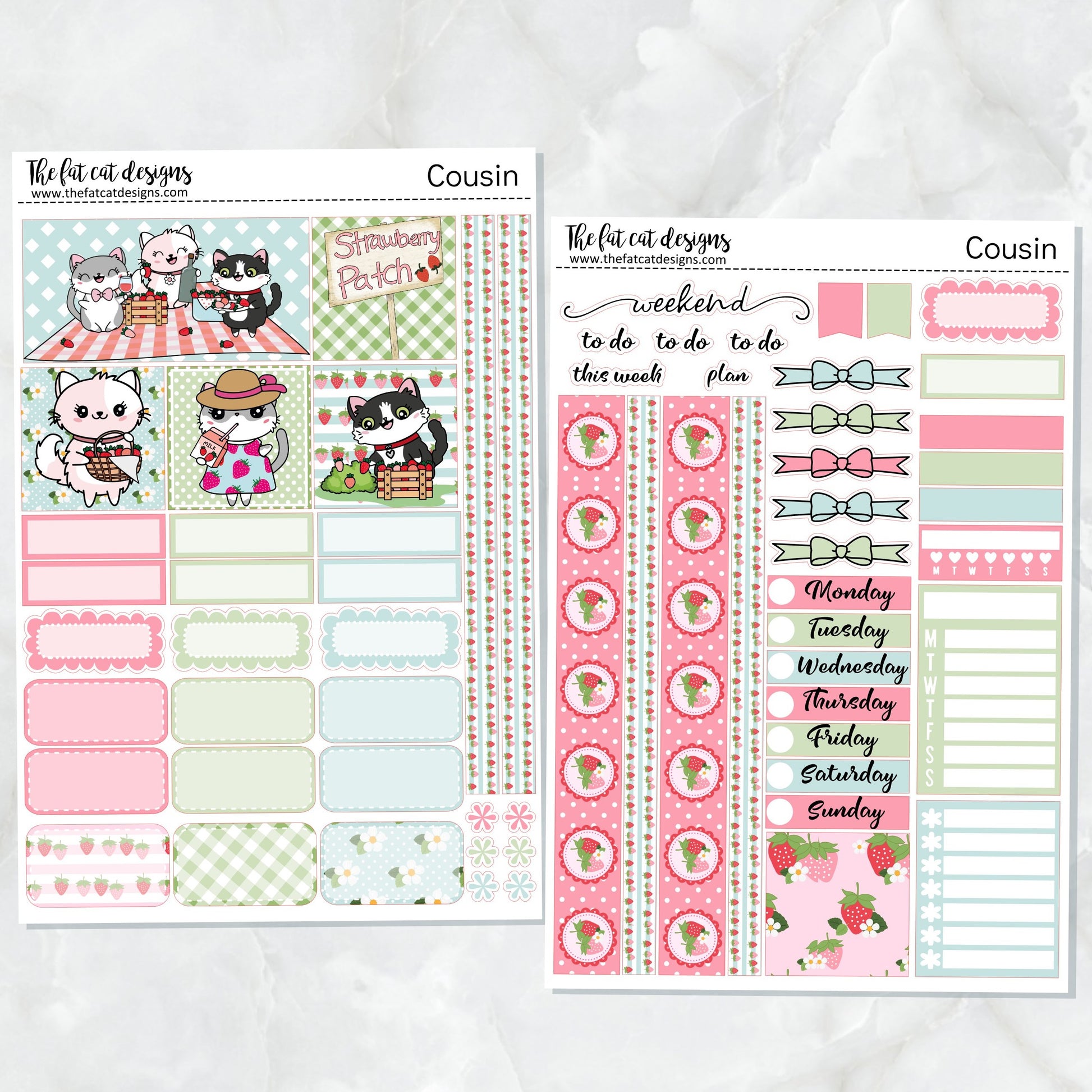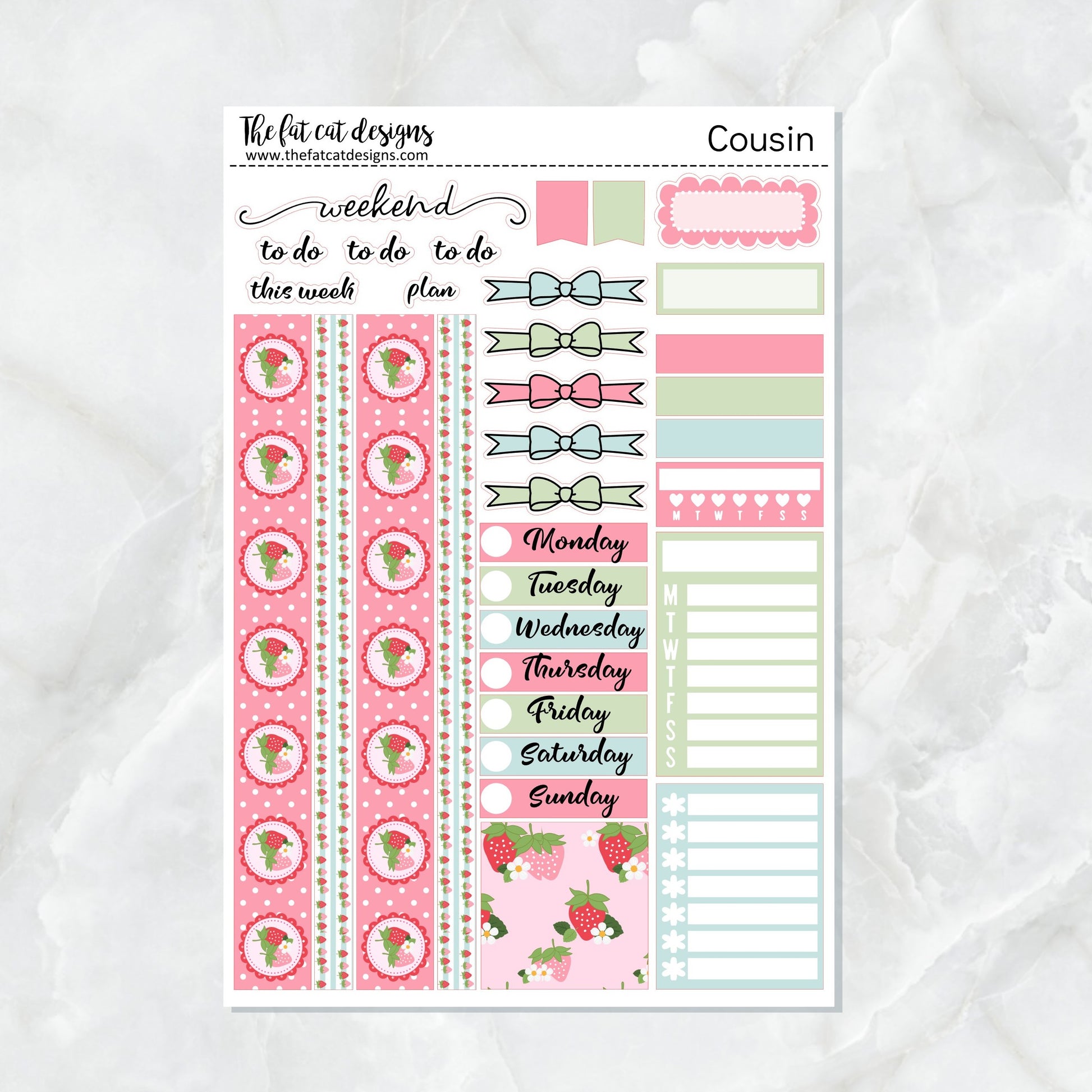 Flora Lily and Bud at the Strawberry Patch Weekly Planner Sticker Kit for the Hobonichi Cousin