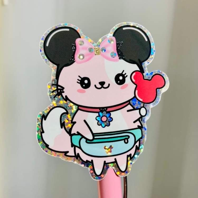 Flora's Magical Day at Disney Glitter Vinyl Cat Decal Die Cut Sticker