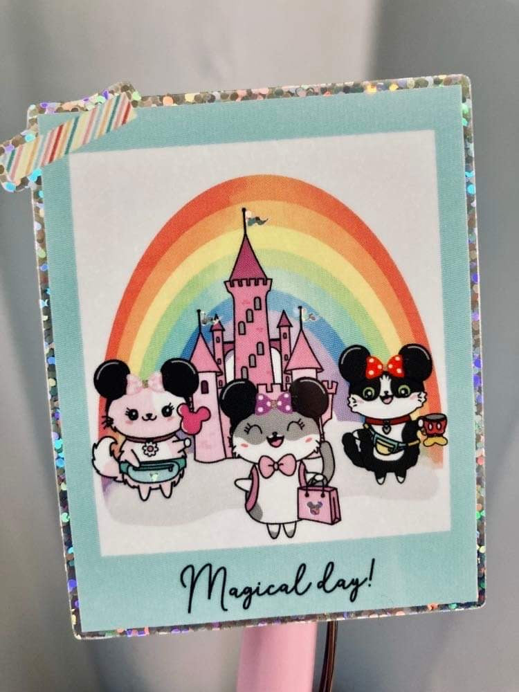 Flora's Magical Day Polaroid Glitter Vinyl Cat Decal Die Cut Sticker