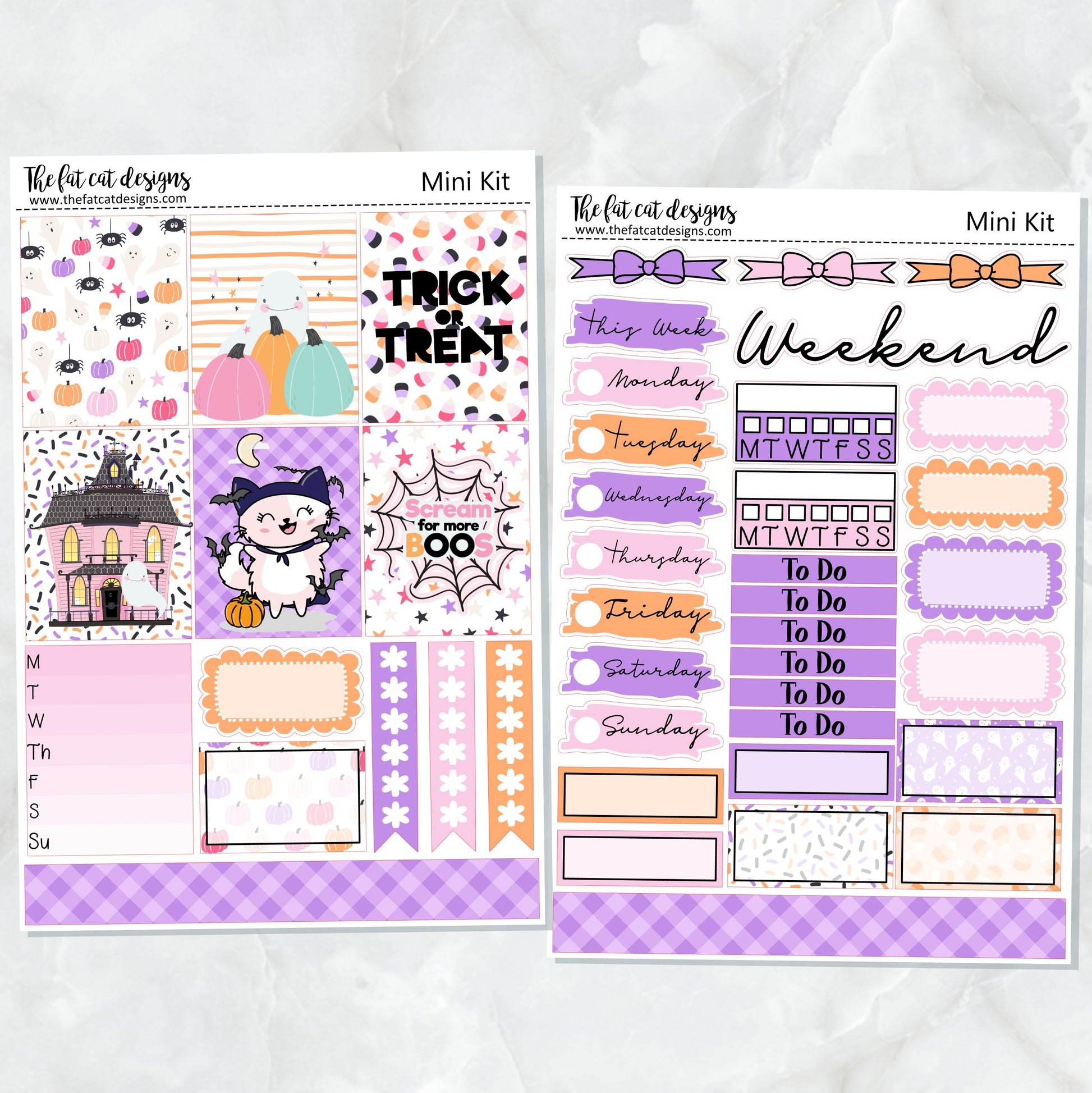 Halloween Flora Trick or Treat Cat Mini Planner Sticker Kit for the Printpression B6 Erin Condren Travelers Notebooks