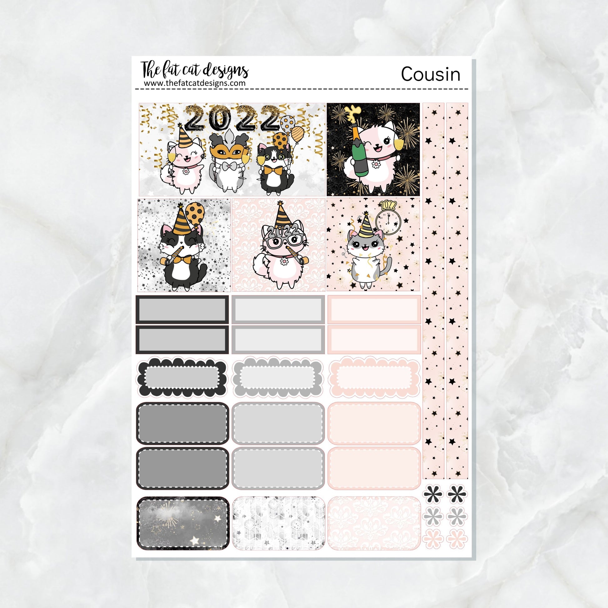 Happy New Year with Flora, Lily and Bud Weekly Planner Sticker Kit for the Hobonichi Cousin