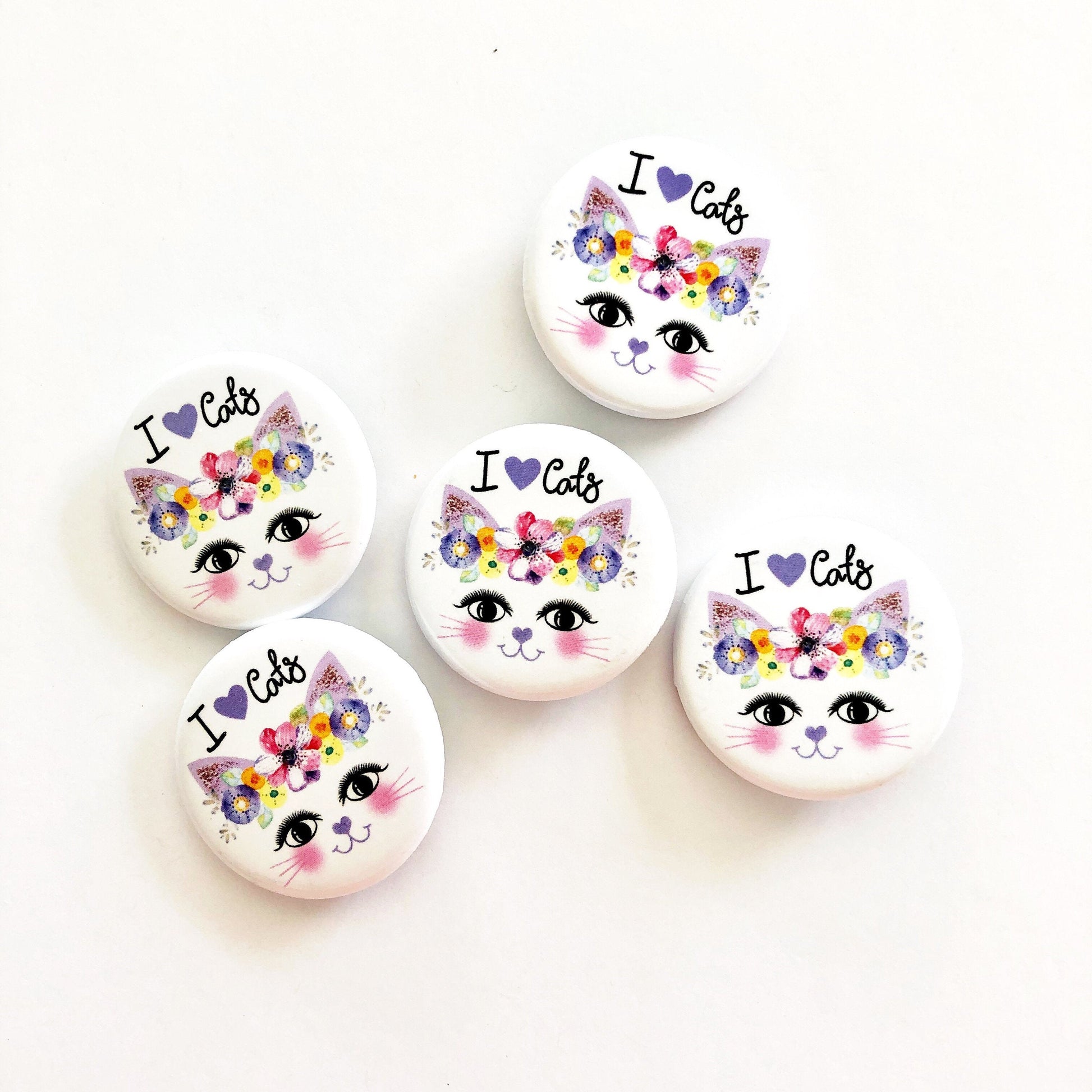 I love Cats Cute Cat Face Button Pins for Personal Planner Happy Planner Bullet Journal Travelers Notebooks