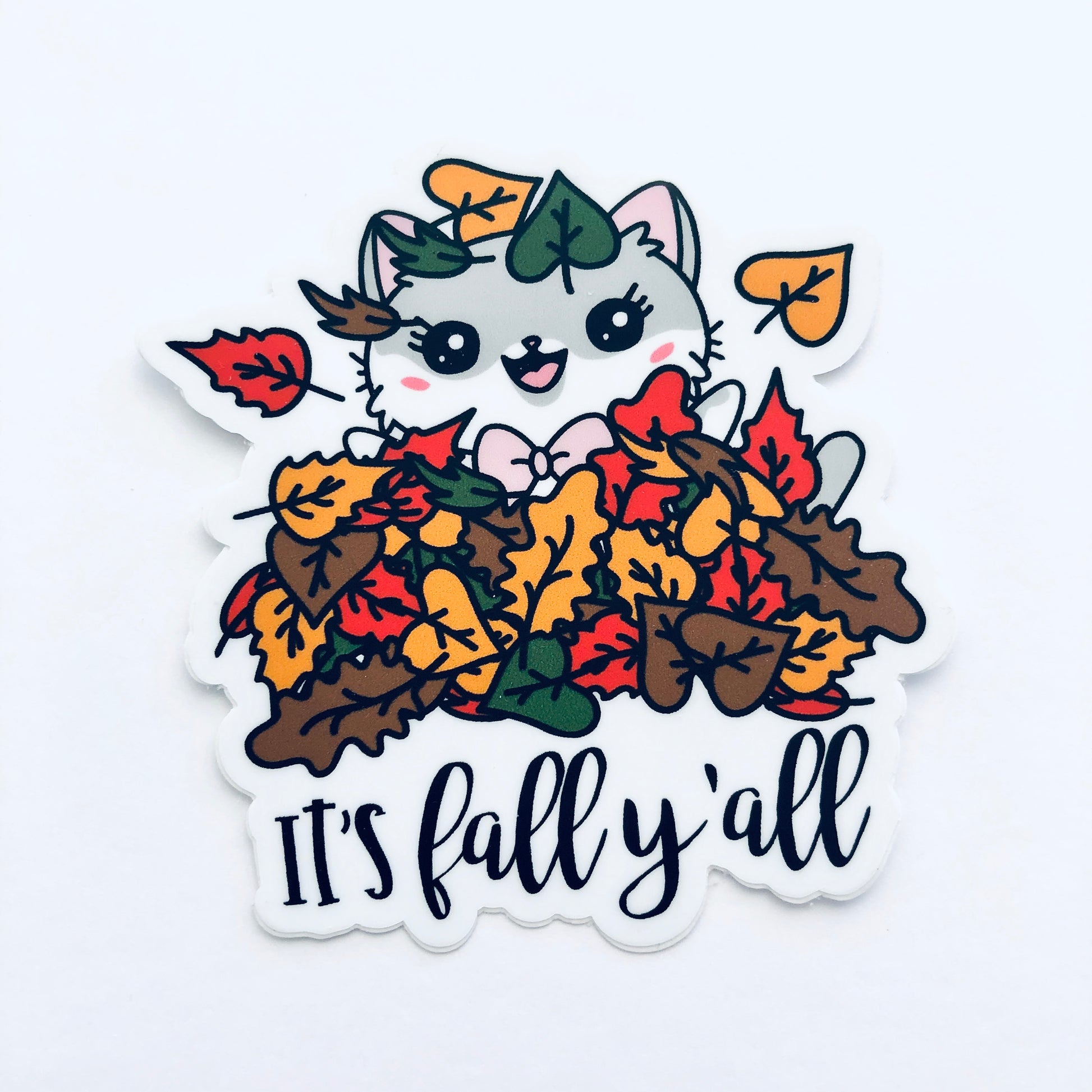 Lily Fall Fun Leaf Pile Waterproof Vinyl Decal Cat Die Cut Sticker for Planners Notebooks Journals Dashboards Hobonichi Weeks Covers