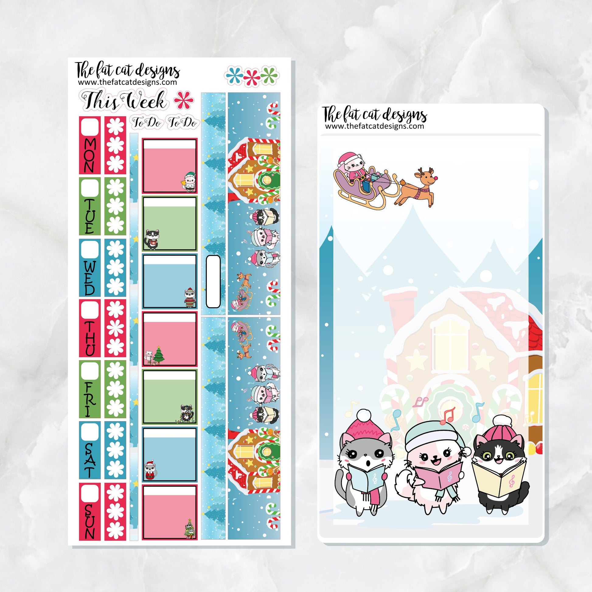 Meowy Merry Christmas with Flora, Lily and Bud Planner Stickers for the Hobonichi Weeks