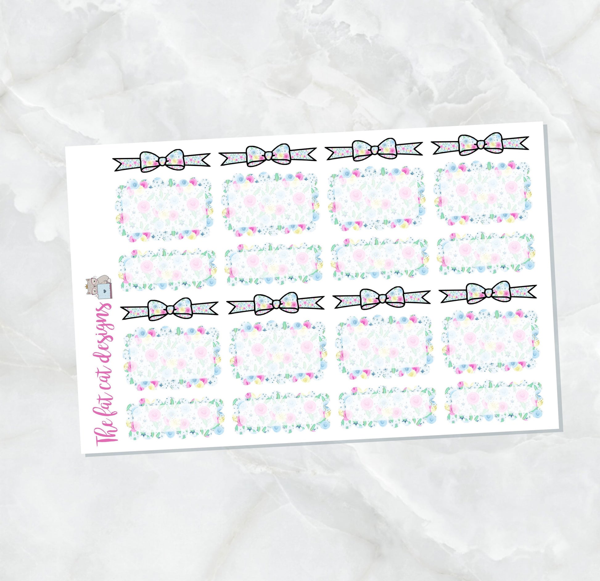 Pink Pastel Floral Bow Headers and Scalloped Box Stickers for Happy Planner Travelers Notebooks Plum Paper