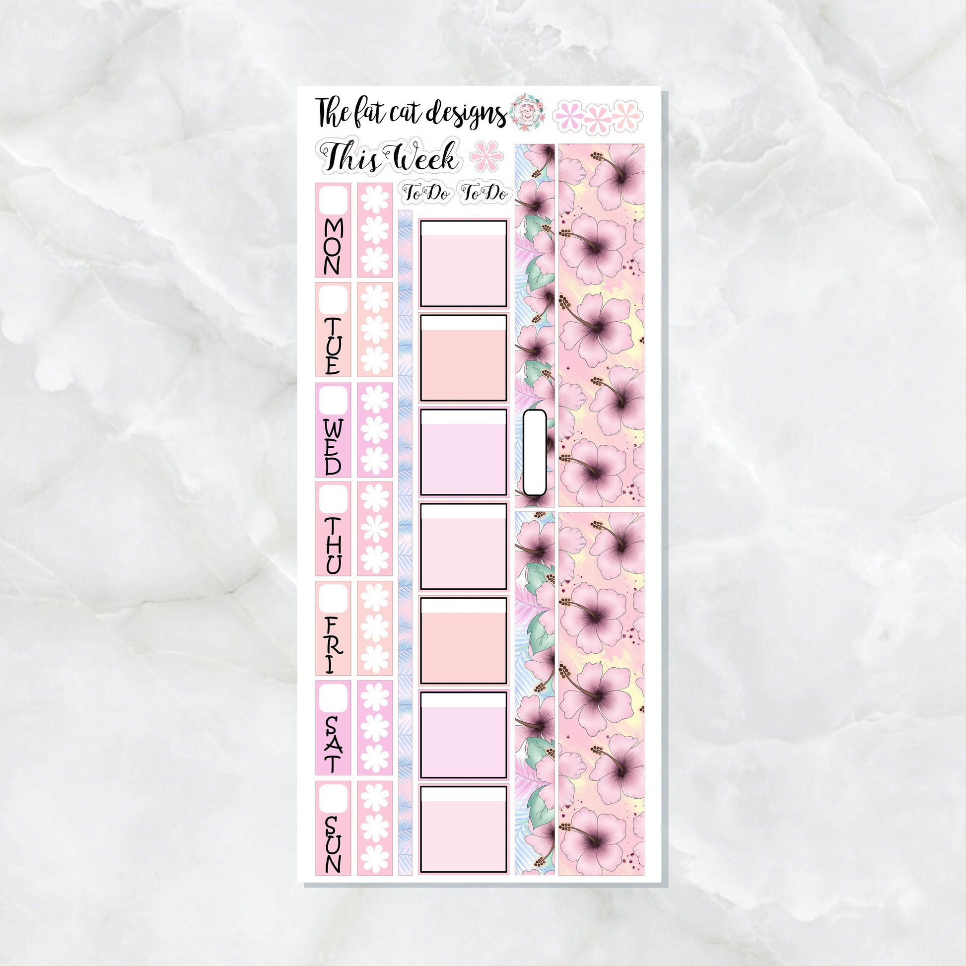 Pink Tropical Hibiscus Flower Planner Stickers for the Hobonichi Weeks