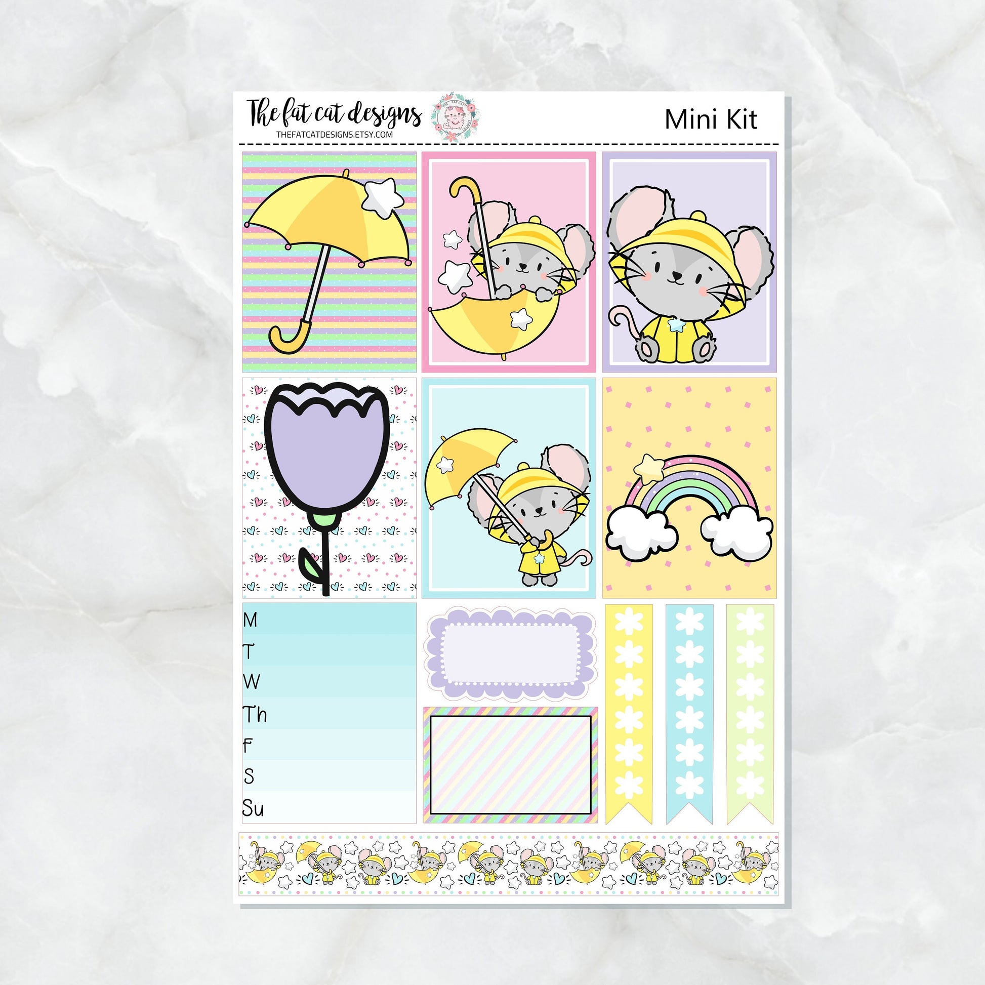 Rainy Day Mouse Spring Mini Planner Sticker Kit for the Printpression B6 Travelers Notebooks