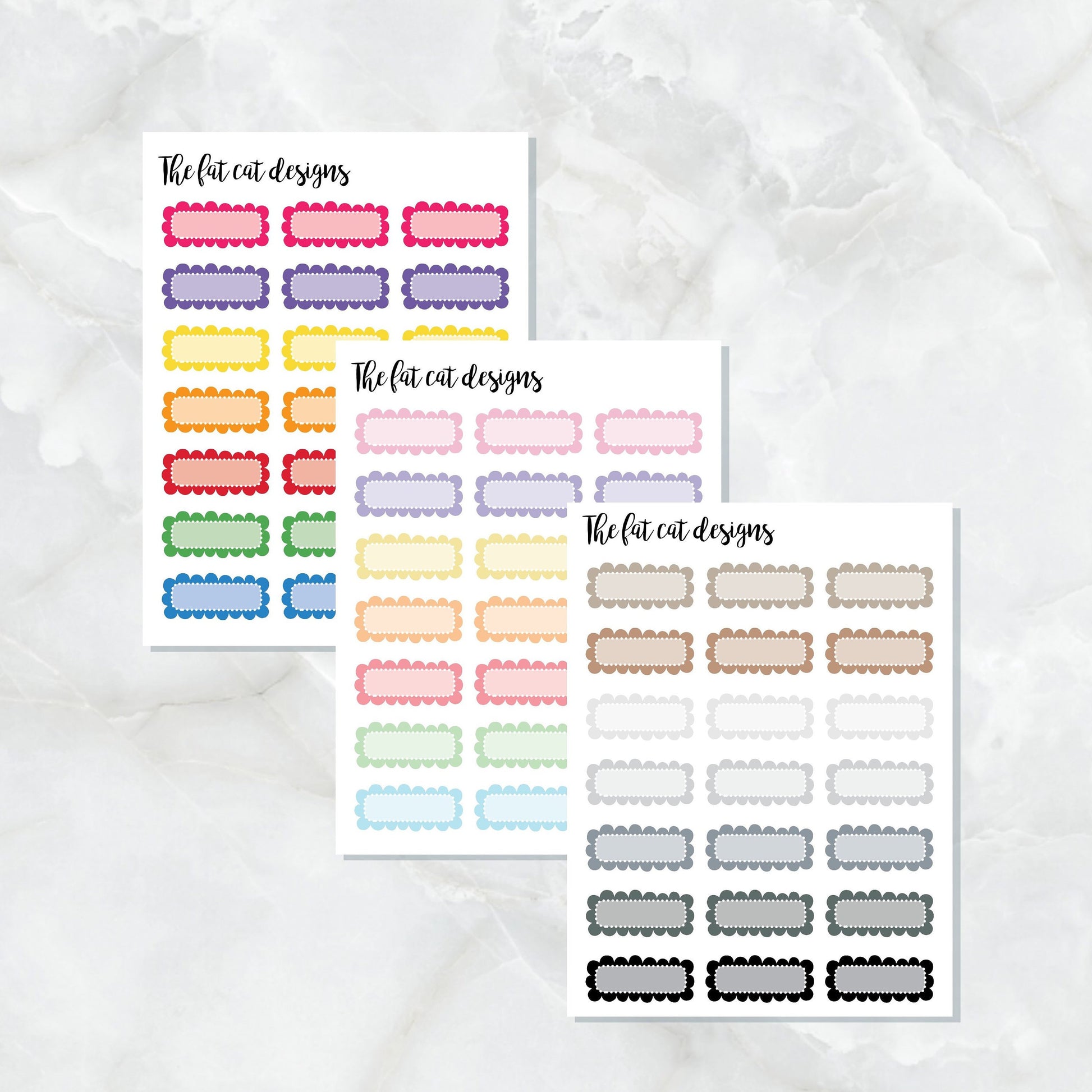 Scallop Doodle Boxes, these cute little stickers come in Primary, Pastel or Neutral Colors and are perfect for your Hobonichi Weeks, Micro and Pocket Planners!