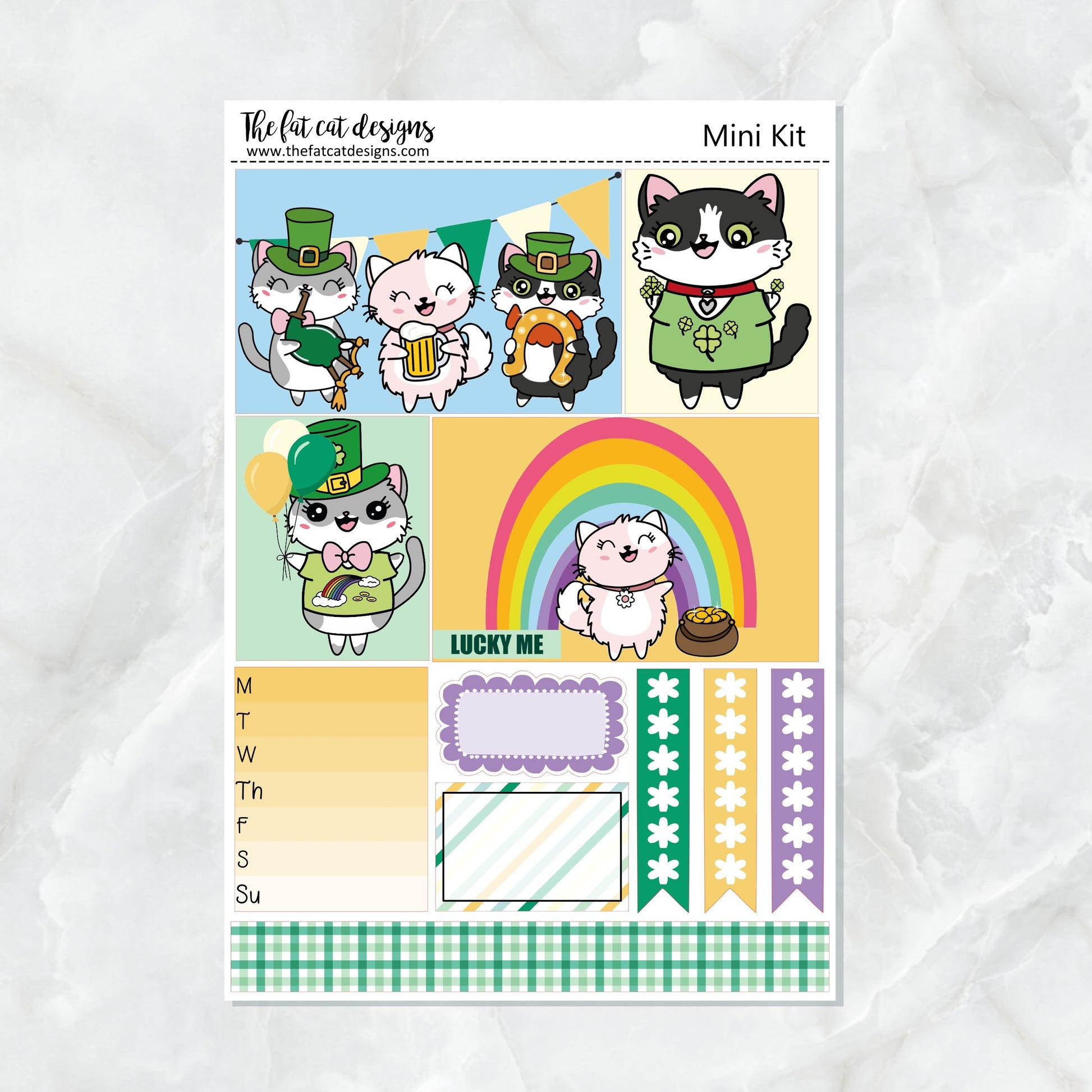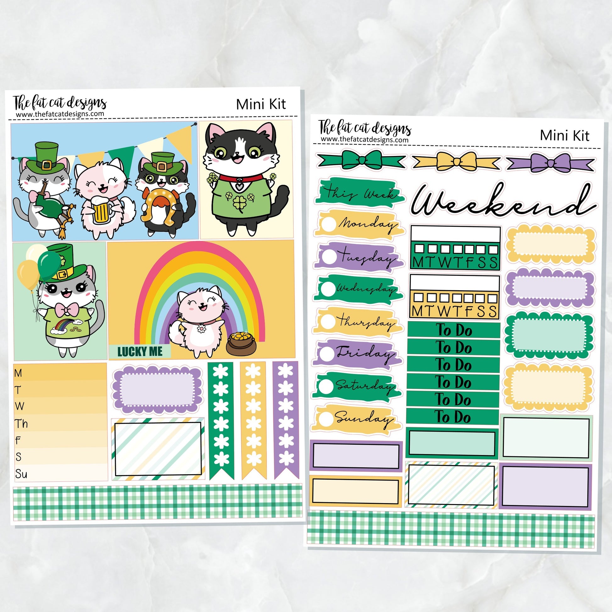 St. Patrick's Fun Cats Mini Planner Sticker Kit for the Printpression B6 Erin Condren Travelers Notebooks
