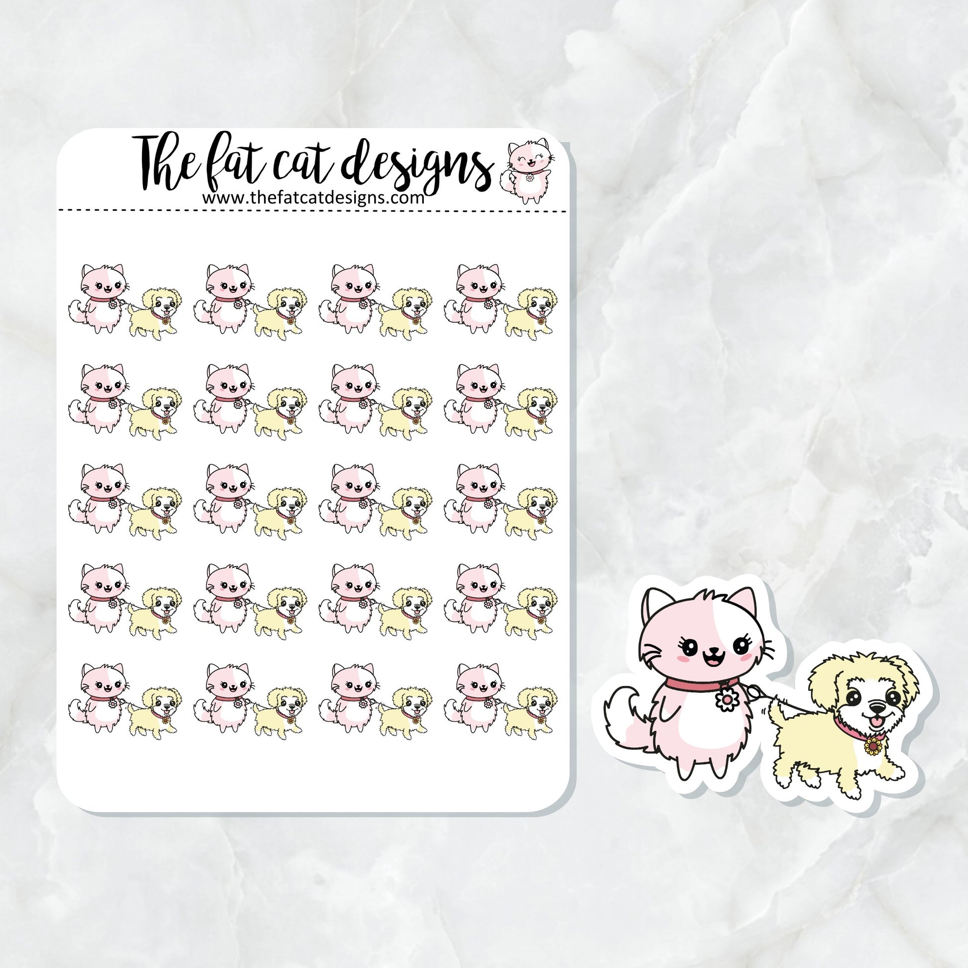 Sunny and Flora Walk the Dog Exclusive Dog Cat Die Cut Sticker Sheet