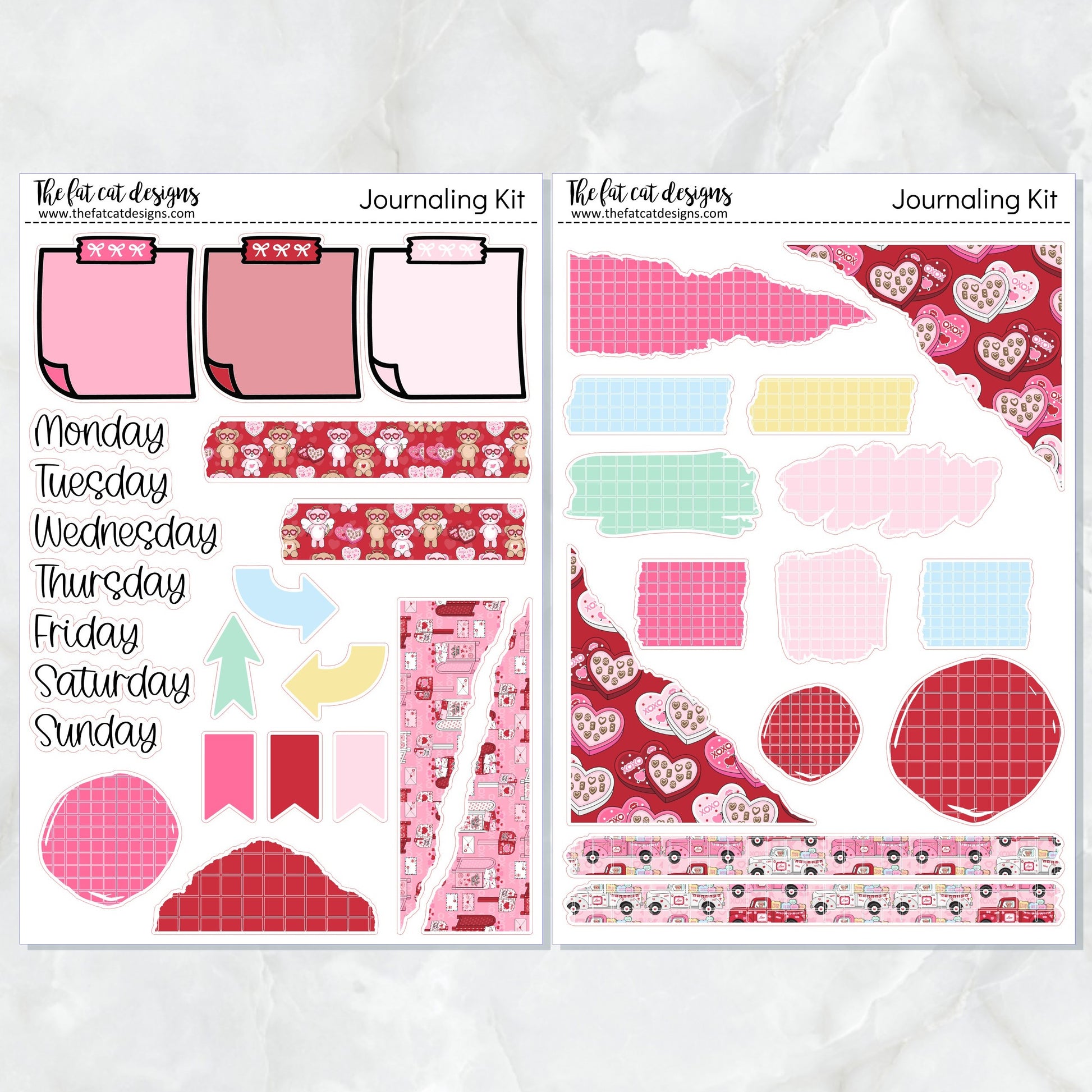 Valentine Bears Journaling Kit for Hobonichi Bullet Journals Planner Stickers
