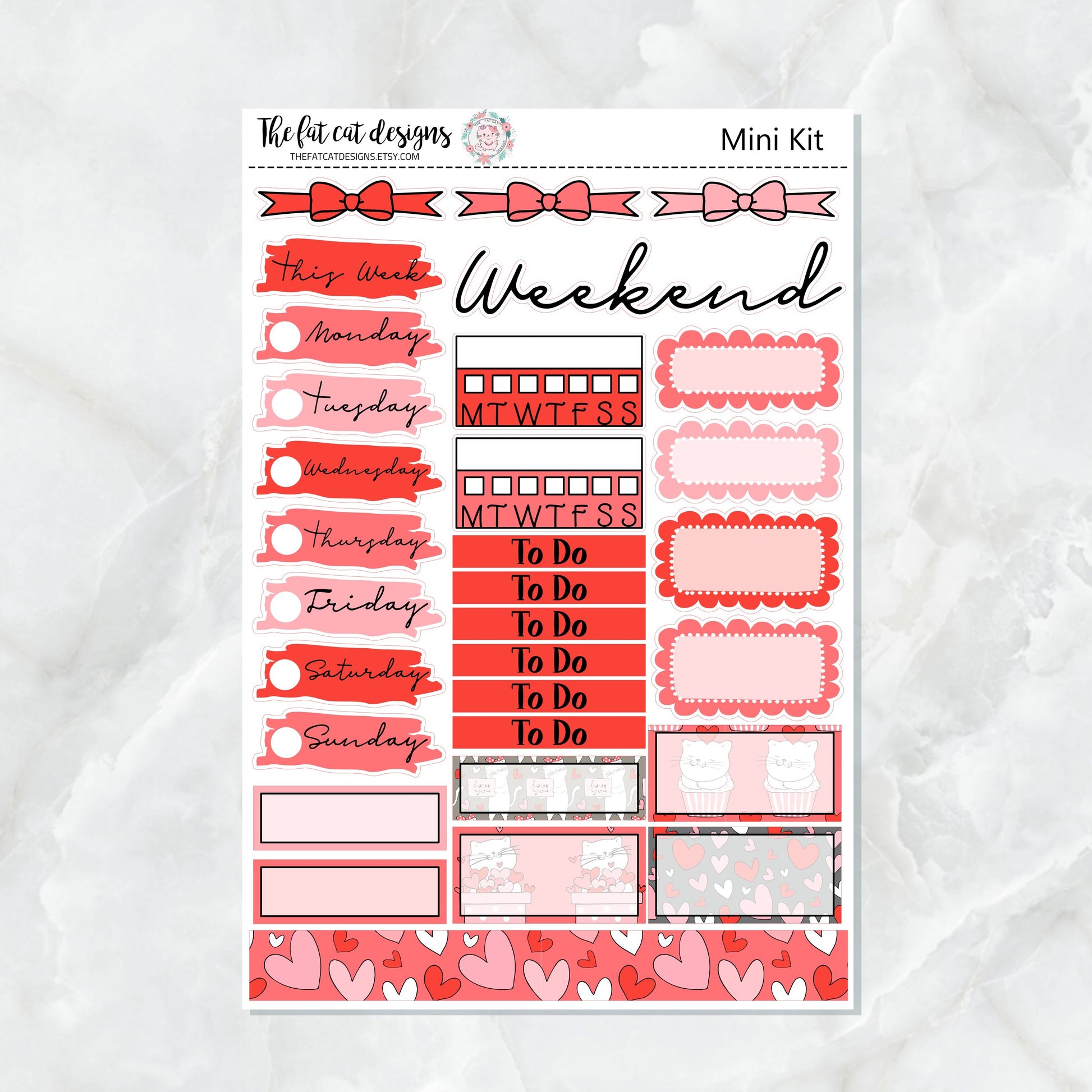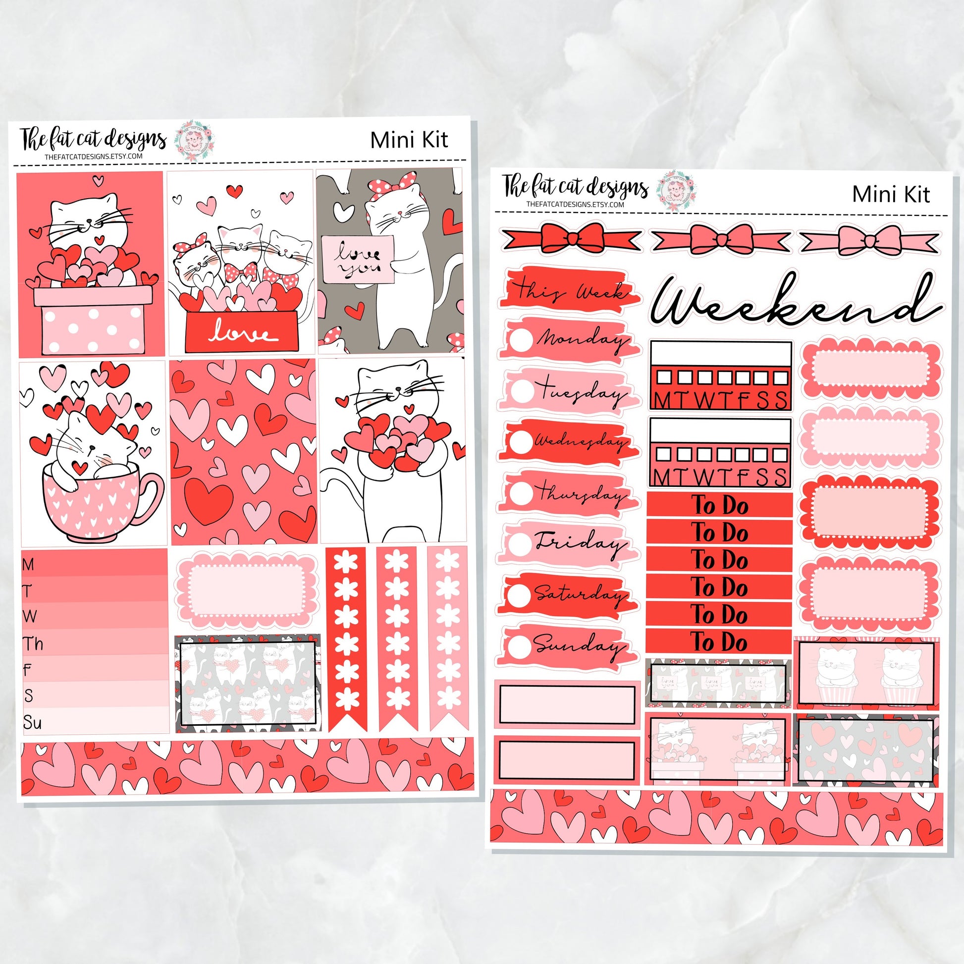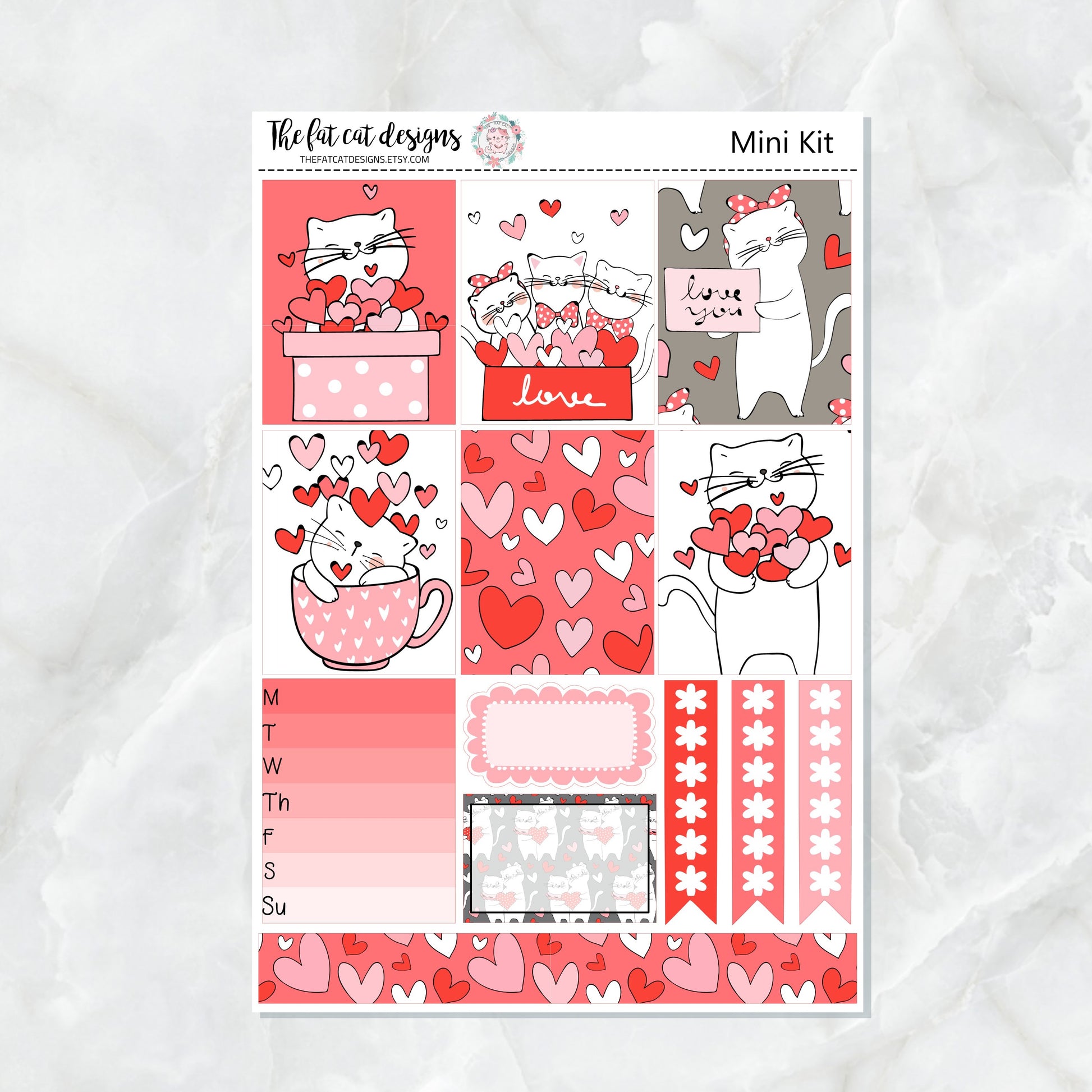 Valentine Kitties Mini Planner Sticker Kit for the Printpression B6