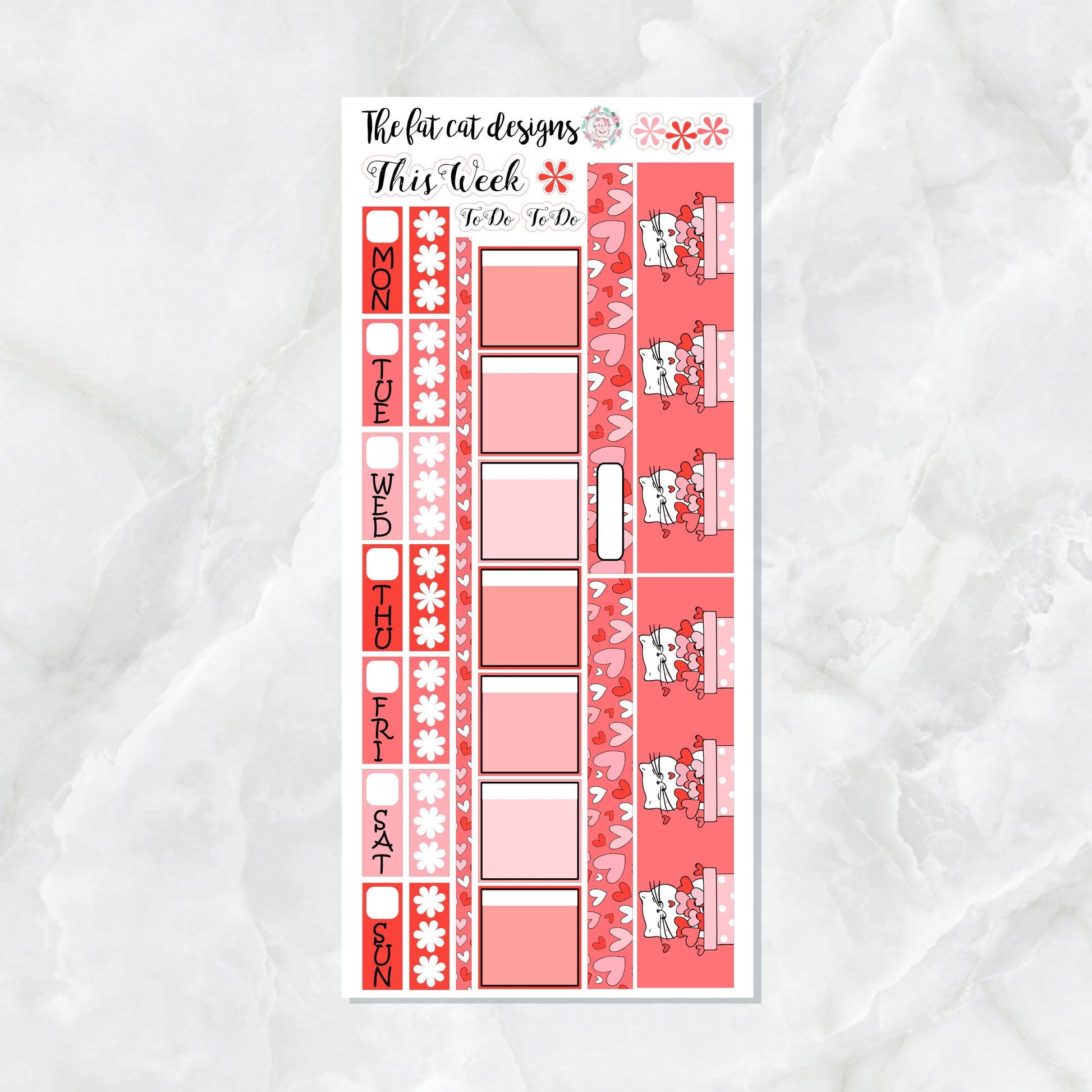 Valentine Kitty Planner Stickers for the Hobonichi Weeks
