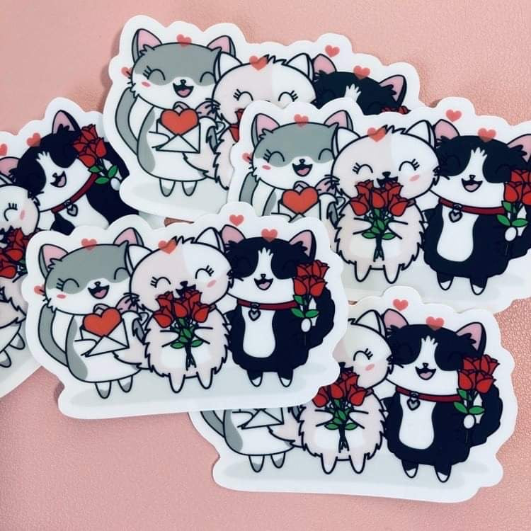 Valentine's Day Flora Lily and Bud Clear Vinyl Cat Decal Die Cut Sticker