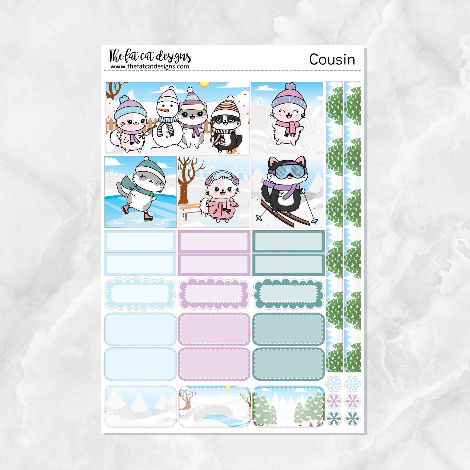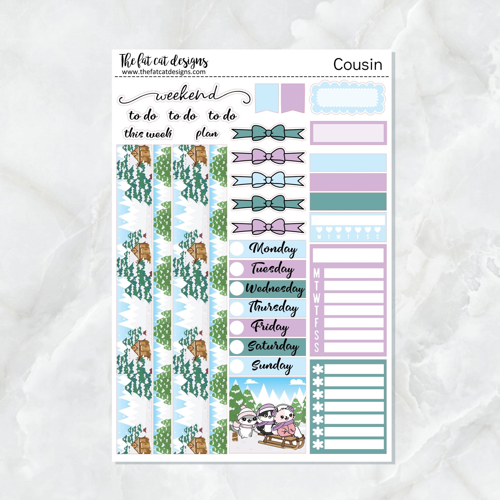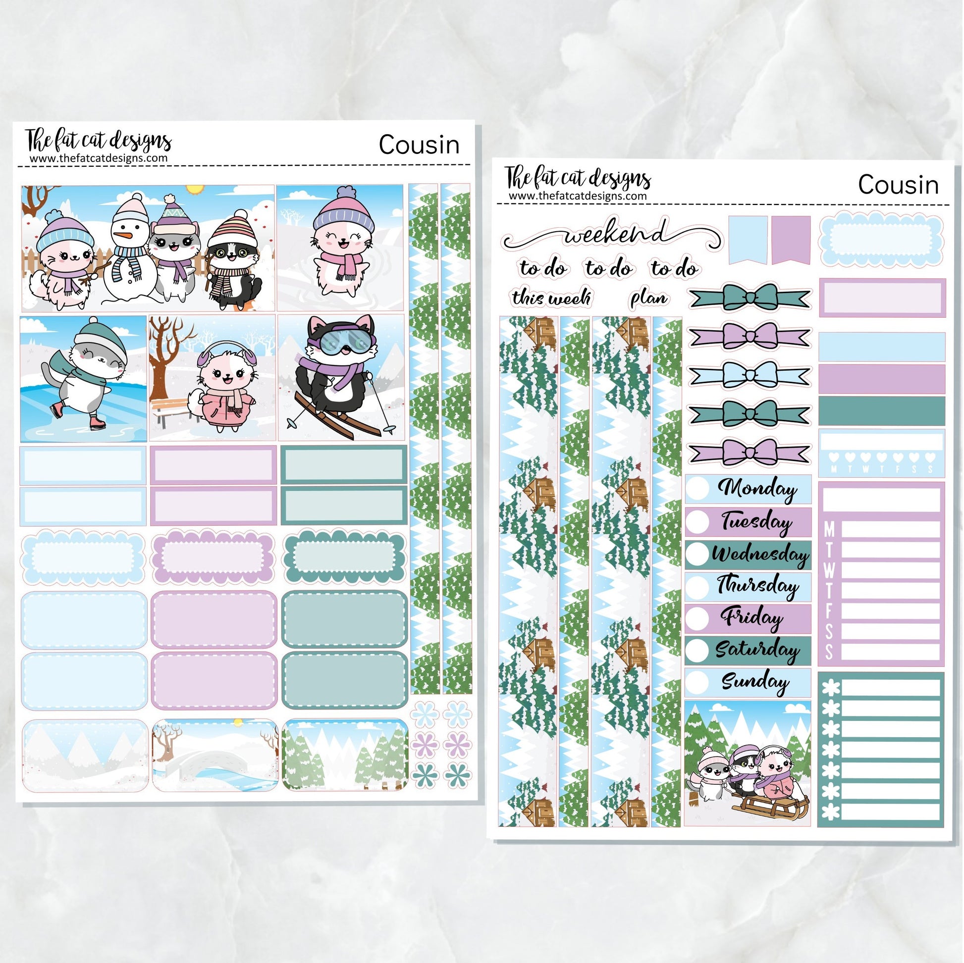 Winter Fun with Flora, Lily and Bud Weekly Planner Sticker Kit for the Hobonichi Cousin